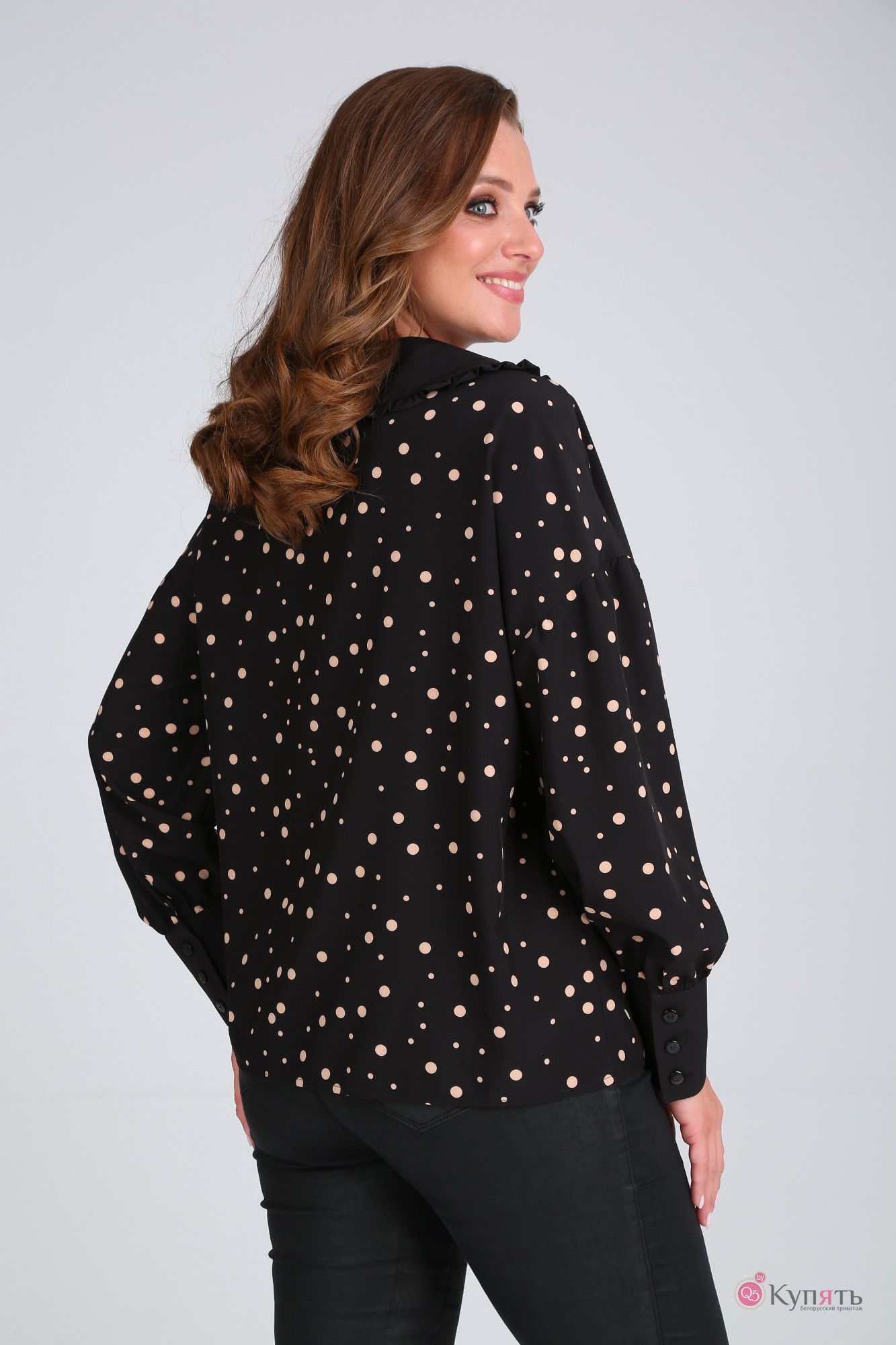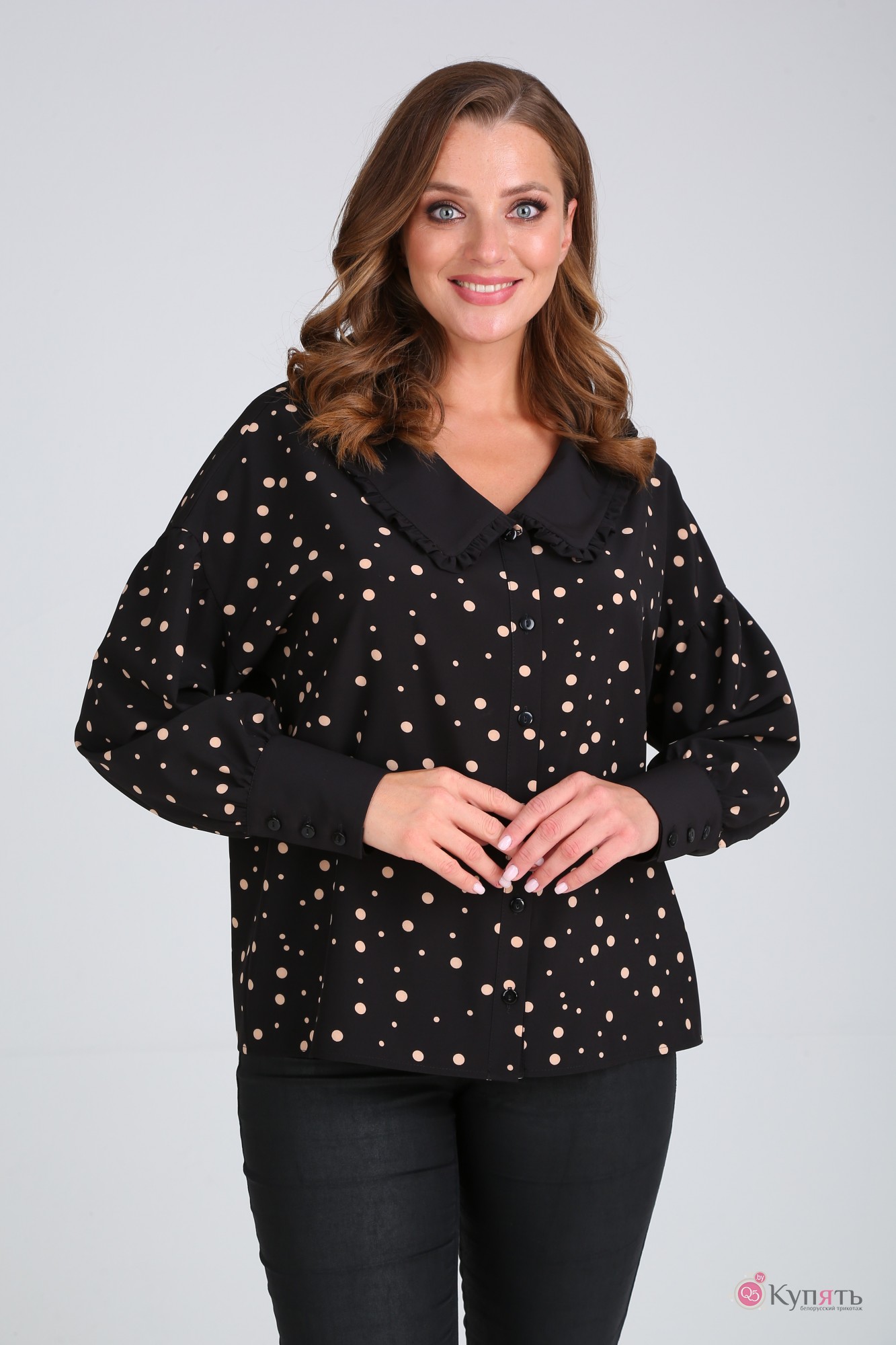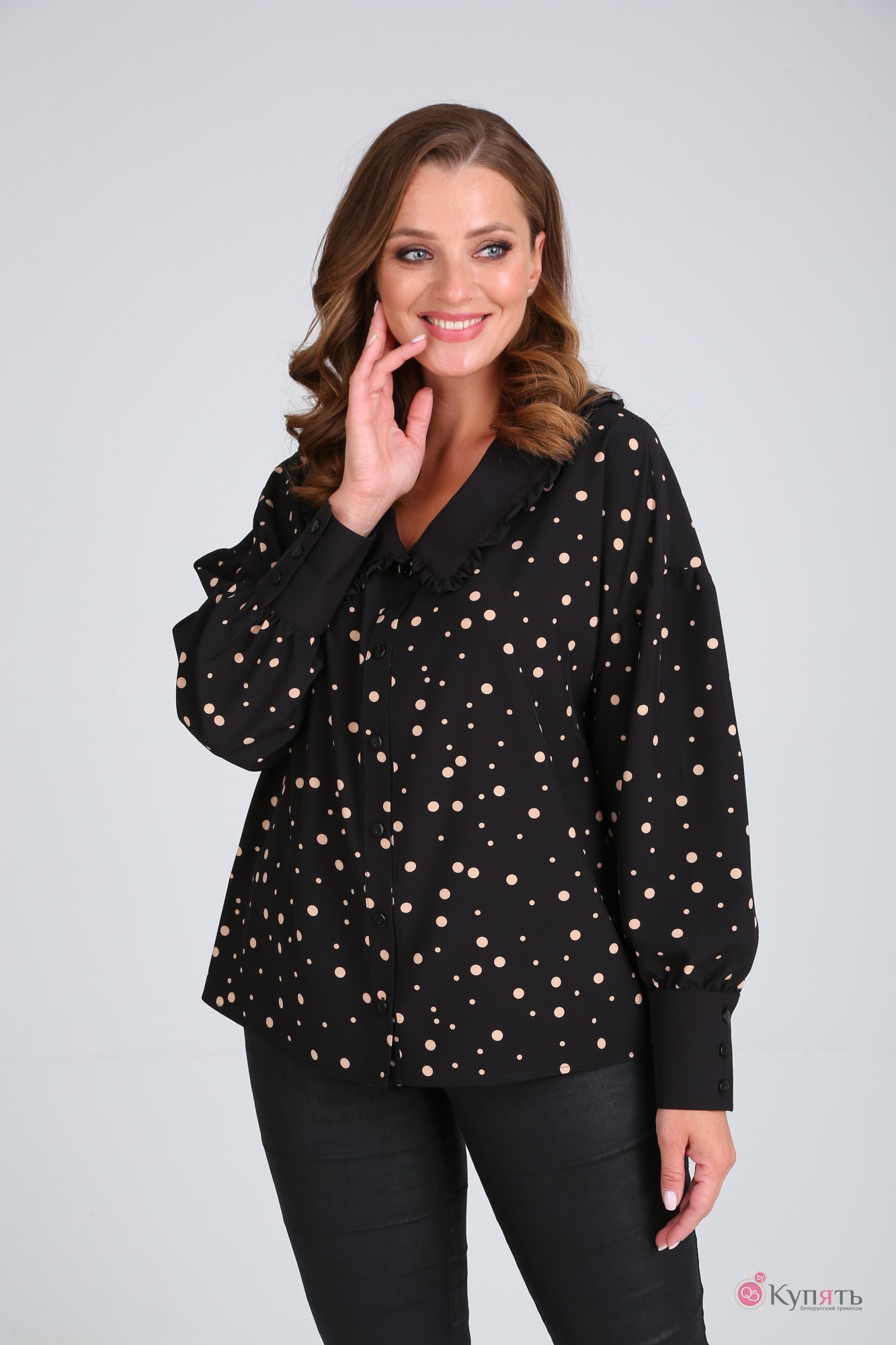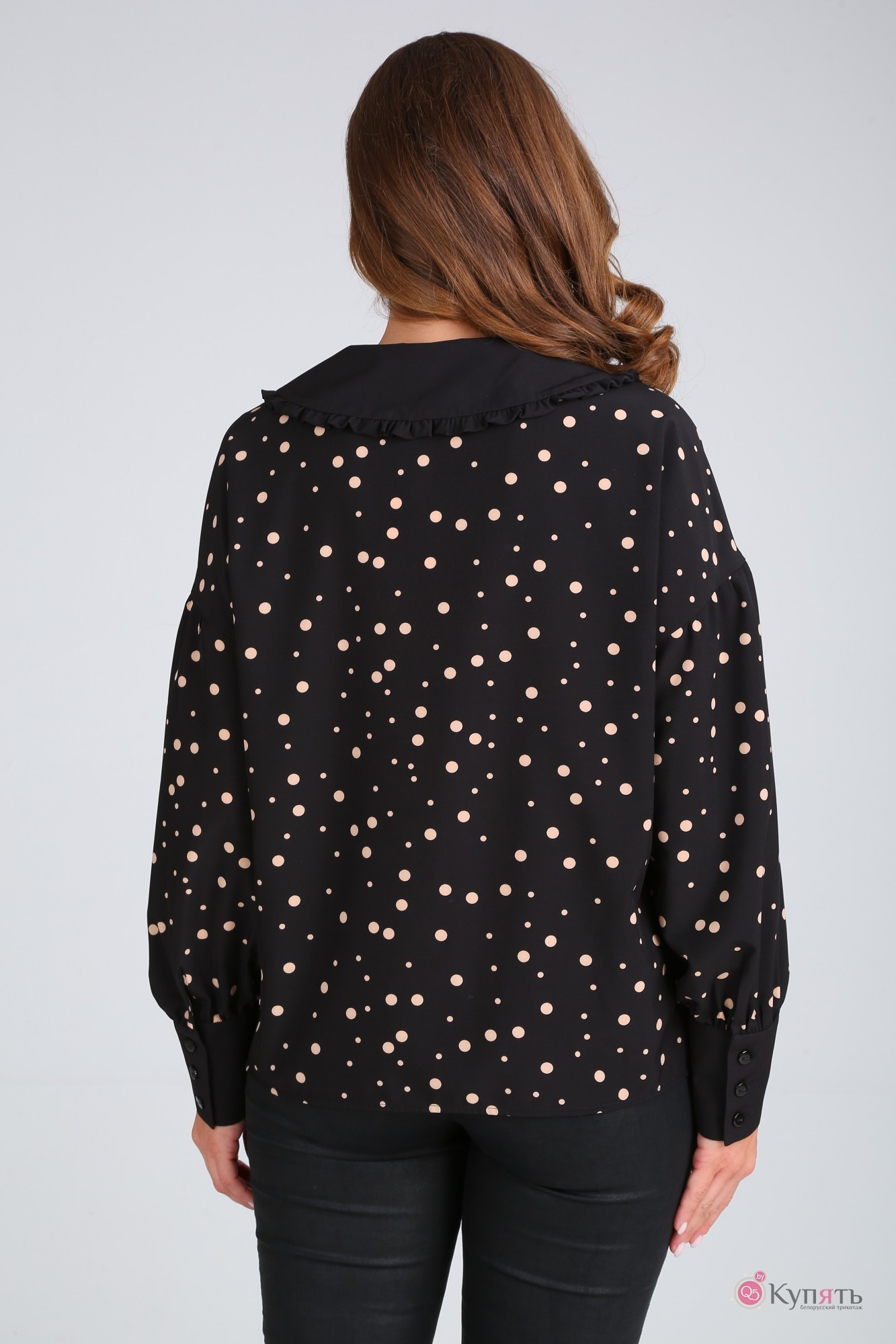 Блузка MODEMA 522 /2 бежевый горох на черном фоне с ID товара 318239