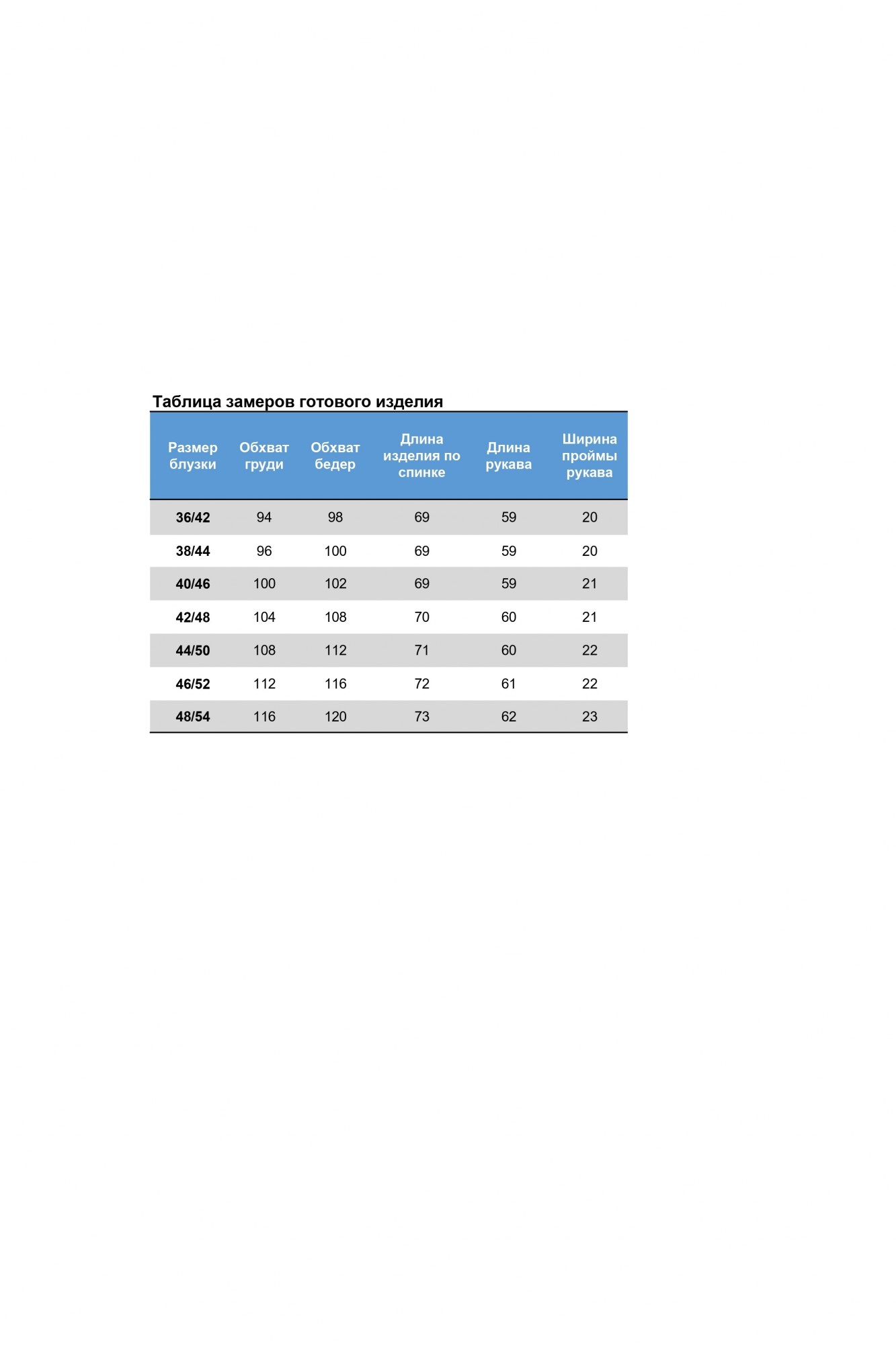 Таблица размеров