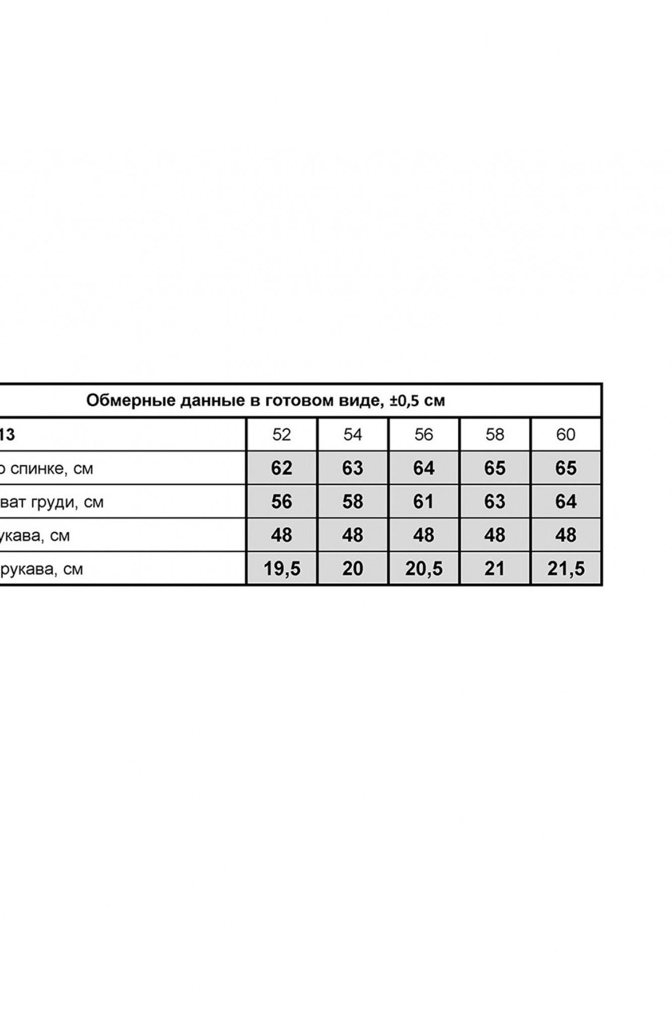 Таблица размеров