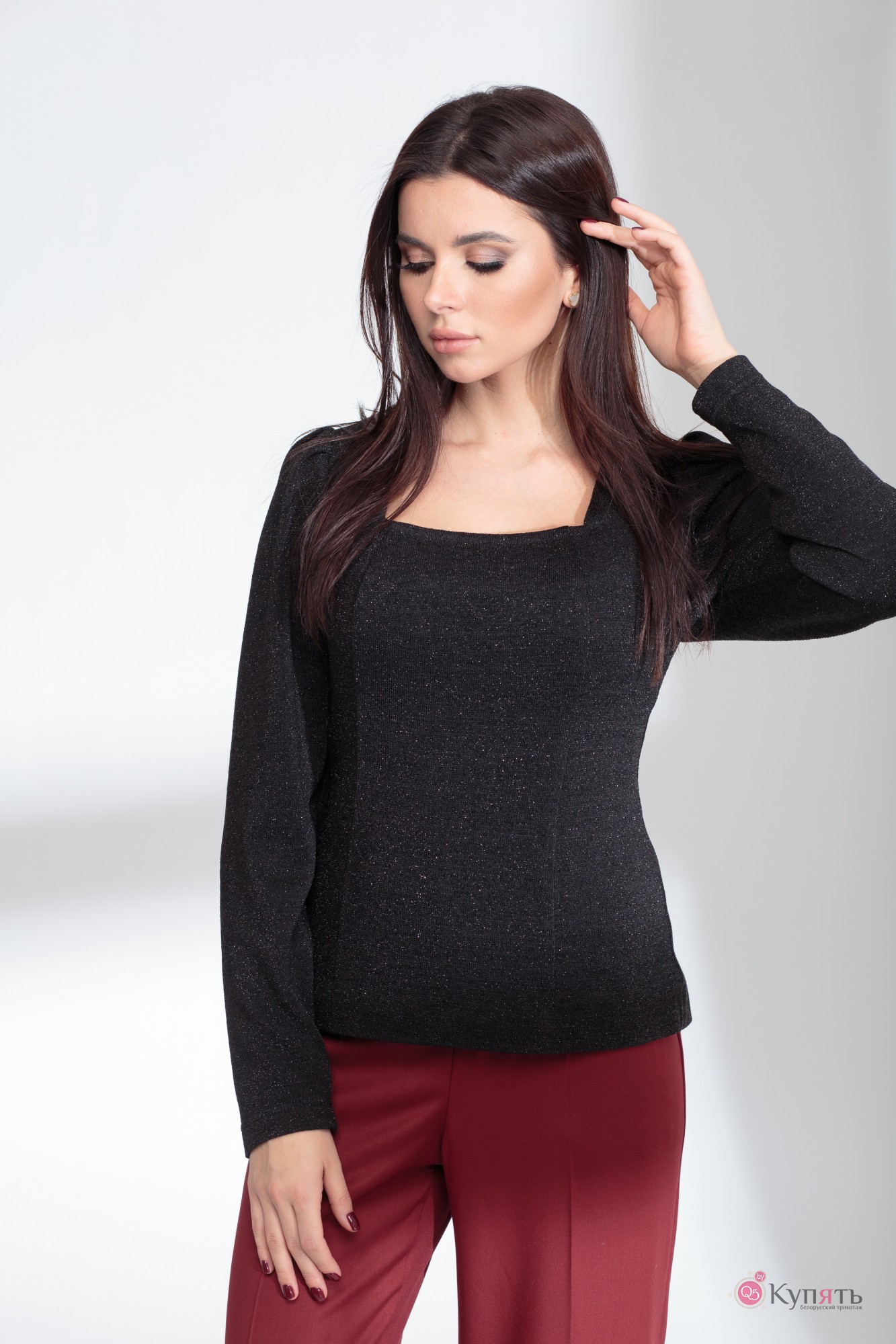 Блузка женская приталенного силуэта из мягкой, тонкой трикотажной ткани с люрексом. Перед блузки с рельефами.