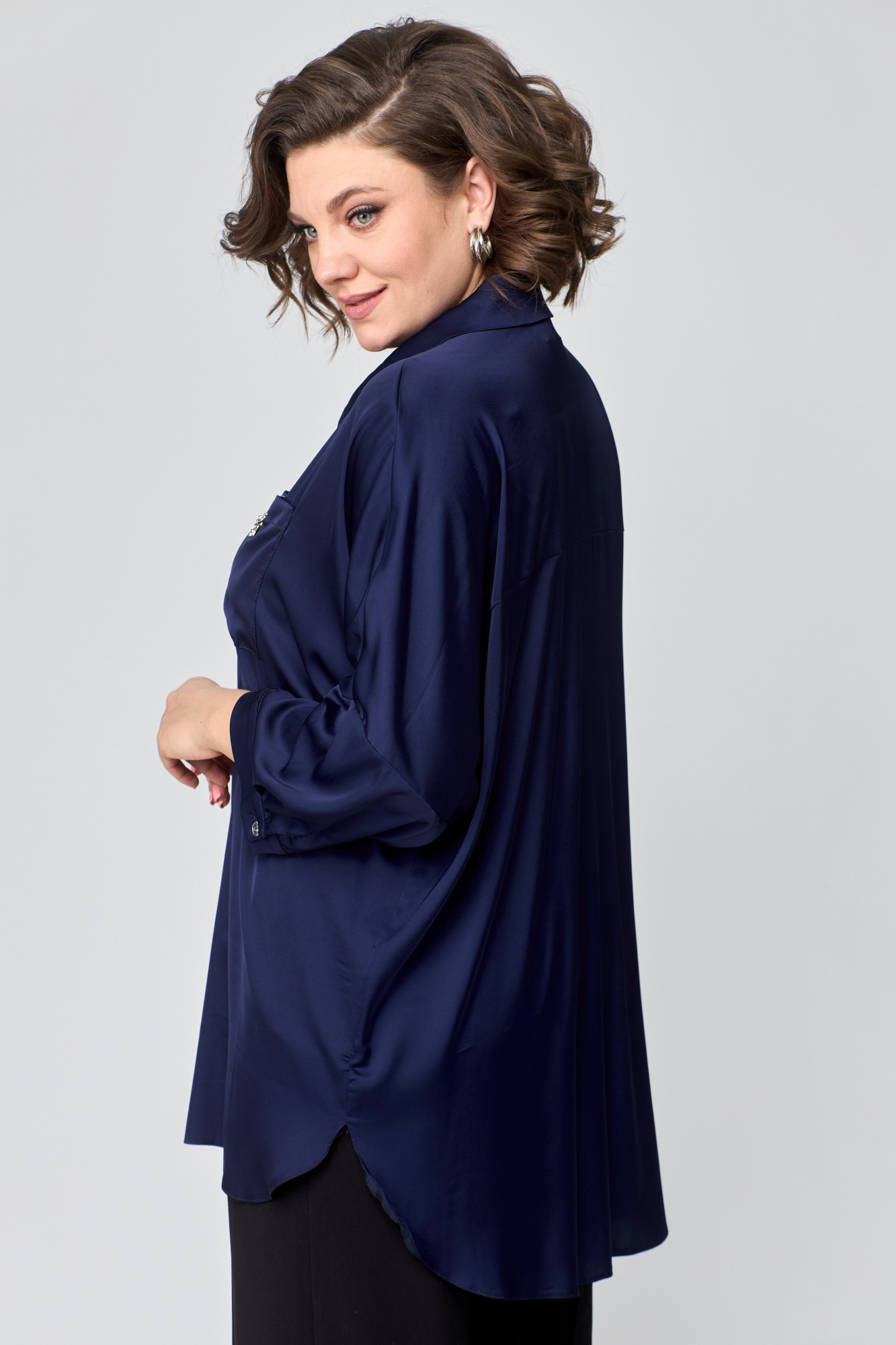 Жакет для женщин разной возрастной категории и разного телосложения. Жакет удлиненный, свободного кроя. Застежка-планка с прорезными петлями на пуговицах. На передней части жакета карман на левой половине. Спинка свободного кроя без талиевых вытачек. По центру спинки кокетка. Воротник рубашечного типа. Низ изделия с фигурными вырезами по боковому шву. Украшением изделия служит брошь на кармане. Линия плеча спущенная, рукав притачной, по низу рукава манжет с застежкой на пуговицу.