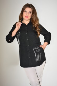 Блузка женская силуэта "летучая мышь" с цельнокроеным рукавом, без плечевых накладок, блуза выполнена из комбинировании 2-х видов ткани. Воротник стойка. Перед: полочка прямого силуэта со средним швом, в верхней части которой обработана потайная молния. Одна полочка из ткани с расцветкой "леопард", другая полочка из ткани однотон. Спинка: резная, по центру притачивается планка шириной 8 см из экокожи, на которую настрачивается отделочная тесьма с надписями, одна часть спинки из ткани однотон, а другая из ткани в расцветку "леопард". Низ рукава обработан манжетой на одну петлю-пуговицу. На уровне локтя выполнен подрез, в который вставлена пата застегивающая на пуговицу, которая регулирует длину рукава.