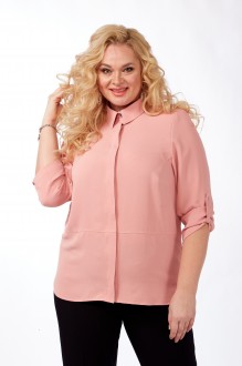 Блузка женская полуприлегающего силуэта с втачными одношовными рукавами. По низу рукавов имеется пата с пуговицей для регулировки длины. Перед отрезной по линии низа и с вытачками, выходящими из проймы. Горловина обработана воротником рубашечного типа на притачной стойке. Застежка центральная потайная на притачной планке, с петлями и пуговицами. Спинка с кокеткой выше линии лопаток, и средним швом. С плечевыми накладками.