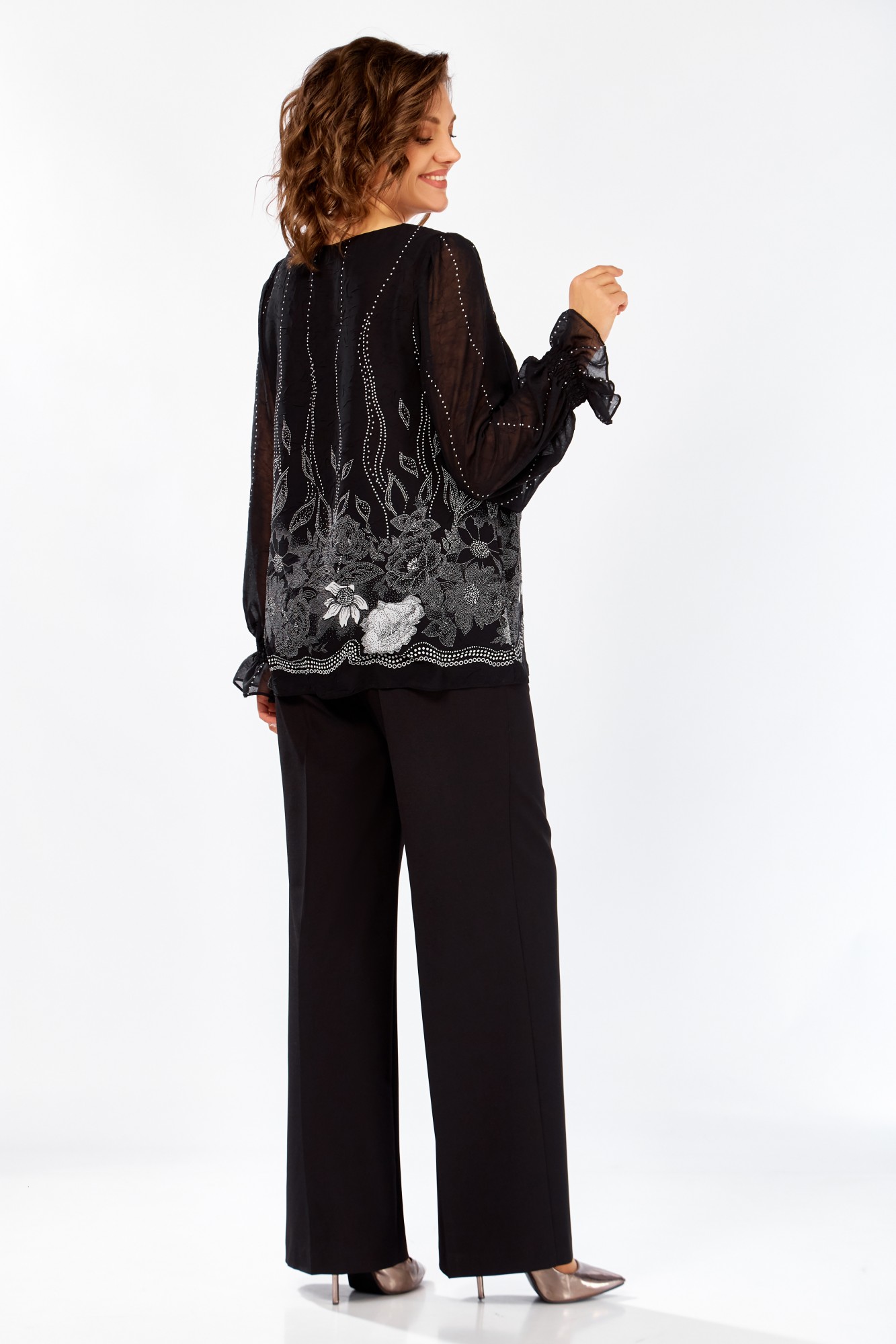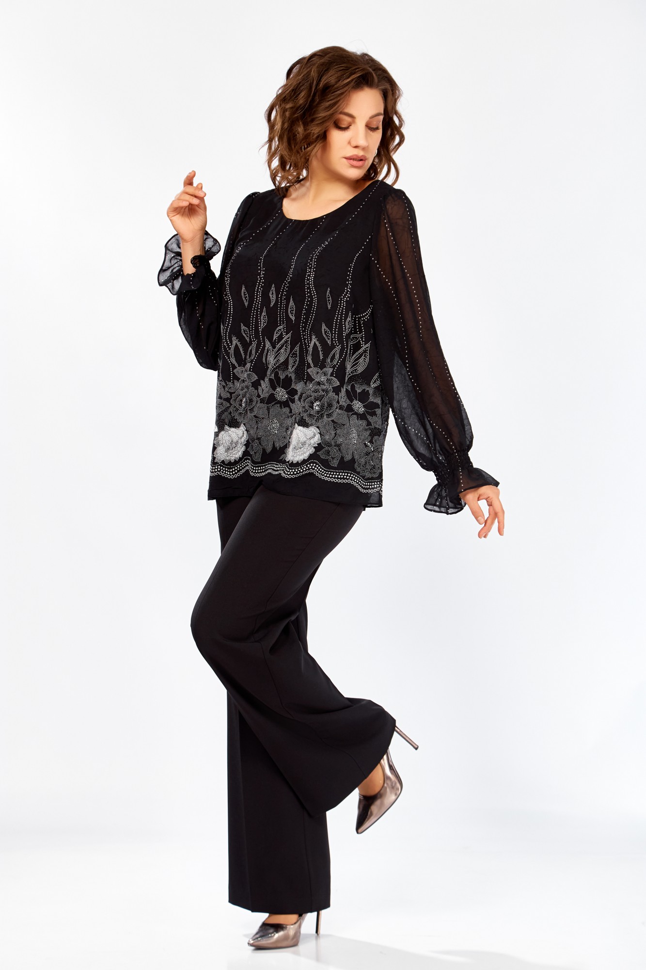 Блузка Swallow 803 .5 Чёрный, принт белые цветы
