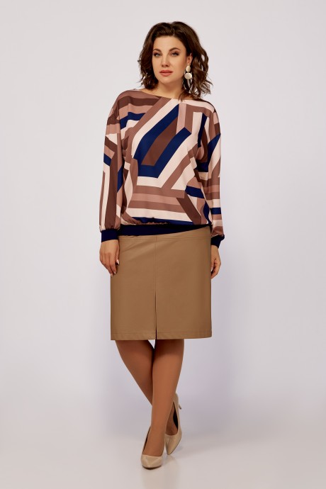 Блузка Swallow 805 Кофейно-бежевый, принт абстракция