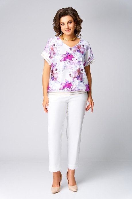 Блузка Swallow 839 .2 Молочный, принт лилово-серые лилии