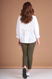 Модная блуза-рубашка, свободного силуэта. Выполнена из хлопкового полотна. Застежка центральная. Воротник рубашечный, на стойке. Рукав цельнокраёный, длиной ¾ покроя «летучая мышь». По низу рукава в виде манжета закреплены обтачкой декоративные четыре складки.