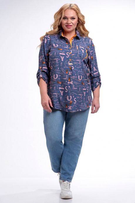 Блуза рубашечного стиля представляет собой модель свободного кроя с центральной застежкой на планку по передней полочке, что добавляет ей классический вид. Воротник втачной, соответствующий стилю рубашки, дополняет общий облик изделия. Нагрудные вытачки на полочке блузы обеспечивают удобную посадку, а на левой полочке настрочен нагрудный карман, придающий модели изысканный вид. Рукав втачной, одношовный, имеет регулируемую длину, что позволяет подстраивать его под индивидуальные предпочтения. Эта блуза идеально подходит как для повседневного образа, так и для офисного стиля благодаря своему универсальному дизайну и комфортному крою. Ткань блузы мягкая и приятная на ощупь, что делает ее носку особенно комфортной в любых ситуациях.