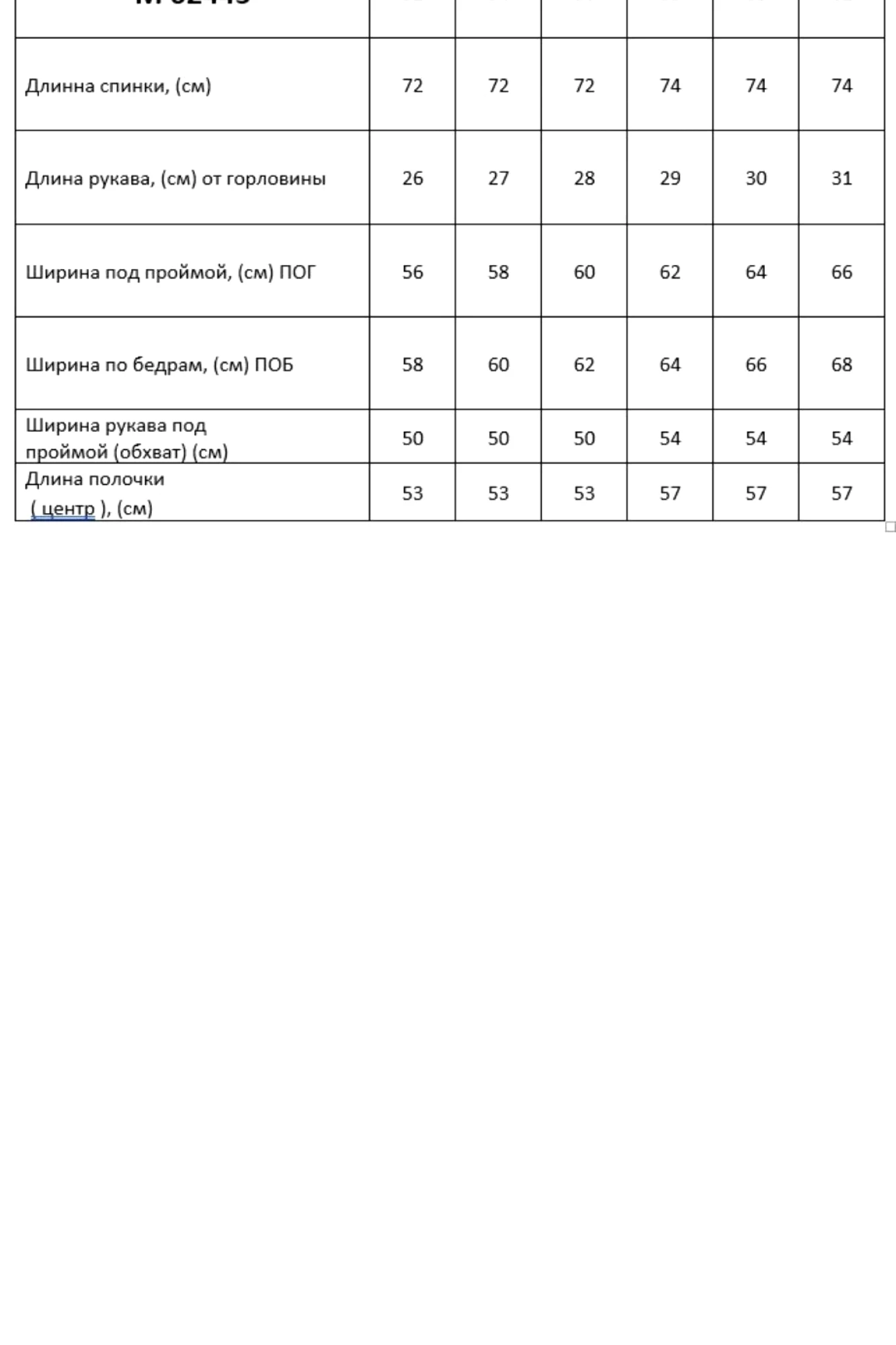 Таблица размеров