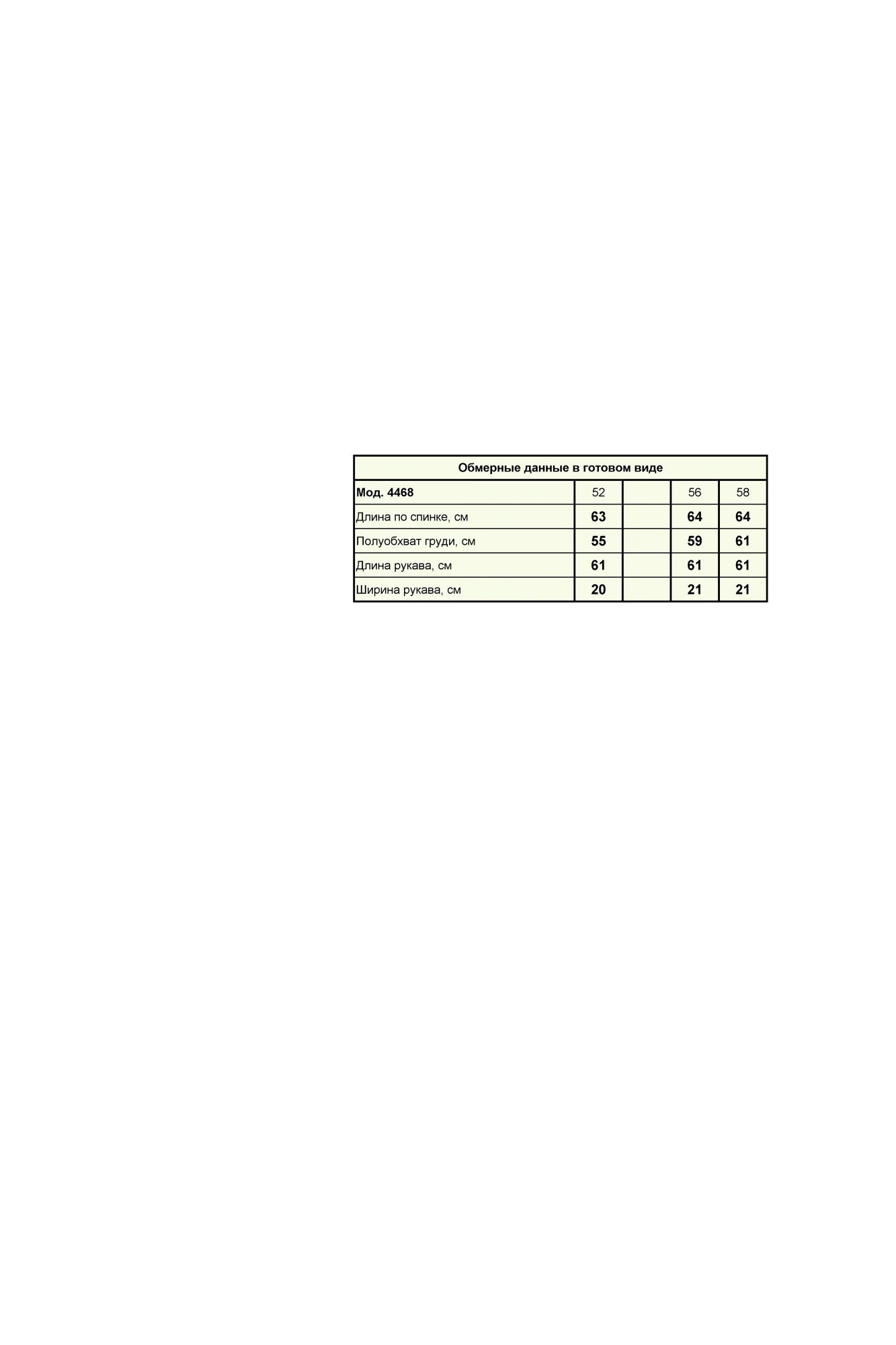 Таблица размеров