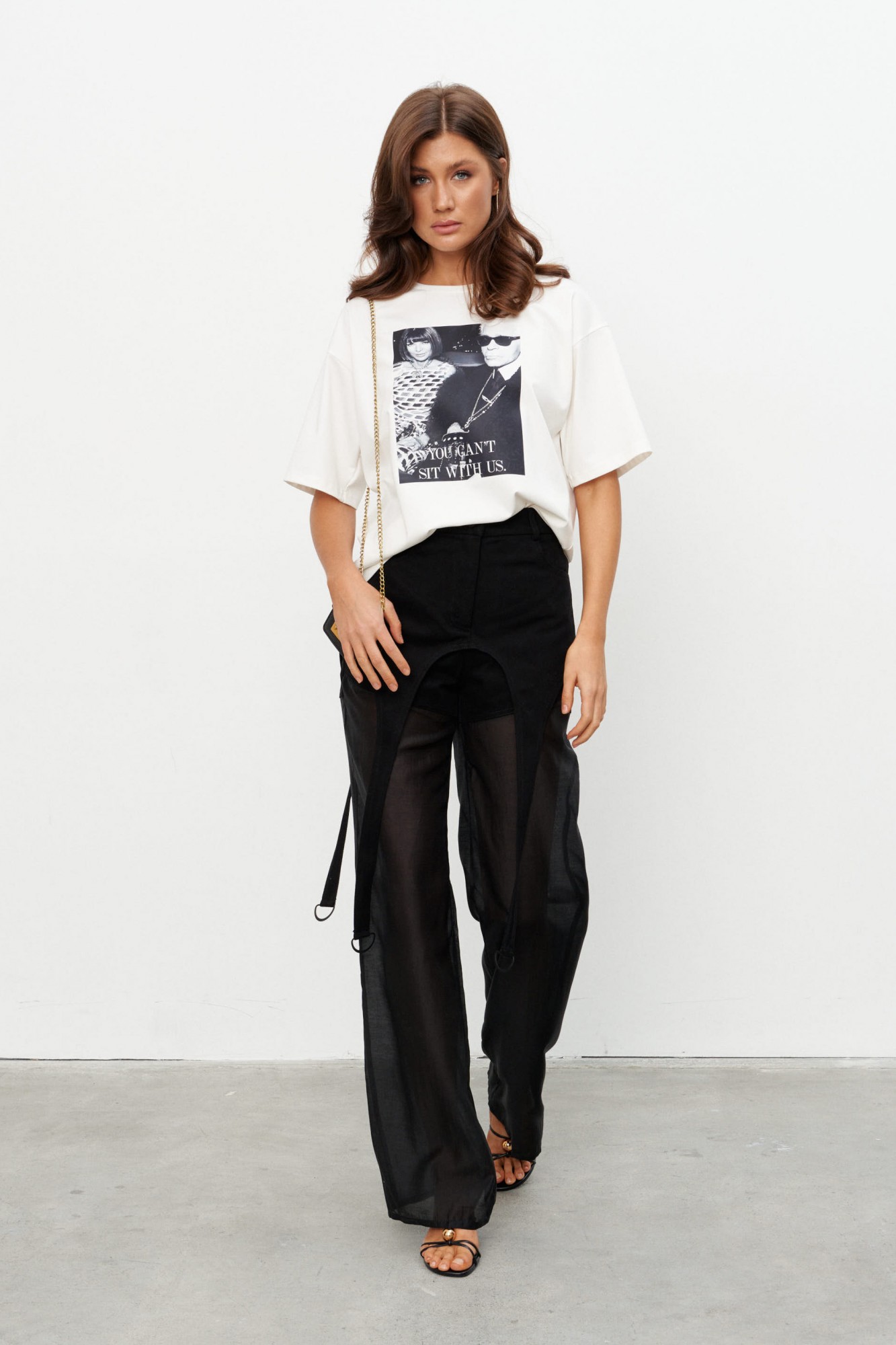 Оверсайз футболка из плотного трикотажа с контрастным принтом «Карл». Линия плеча спущена, горловина отделана эластичной бейкой.