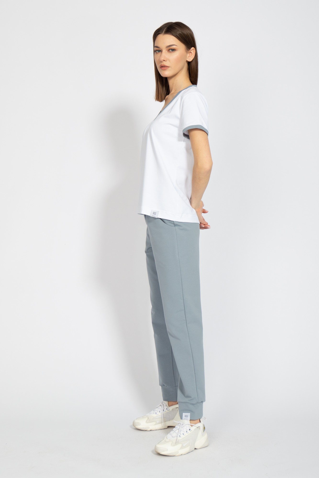 "Джемпер с V-образным вырезом и отделкой воротника и манжет в цветах костюмов. Ткань френч терри (2-х ниточный футер) с невероятно нежным внутренним слоем, качество Пенье, плотность 235 г.м2