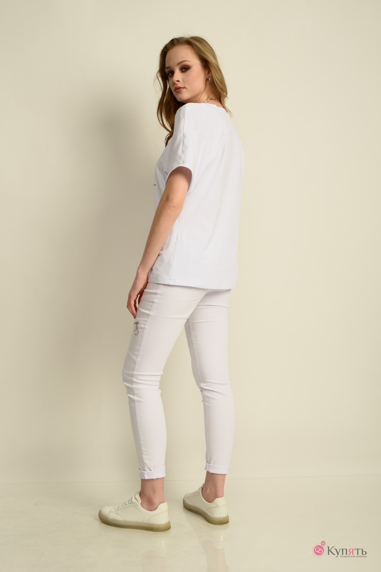 майка прямого силуэта, свободного кроя с цельнокроеным рукавом. Низ на подгибке, горловина на планке. Низ рукава на планке с необработанным срезом. По переду печать.