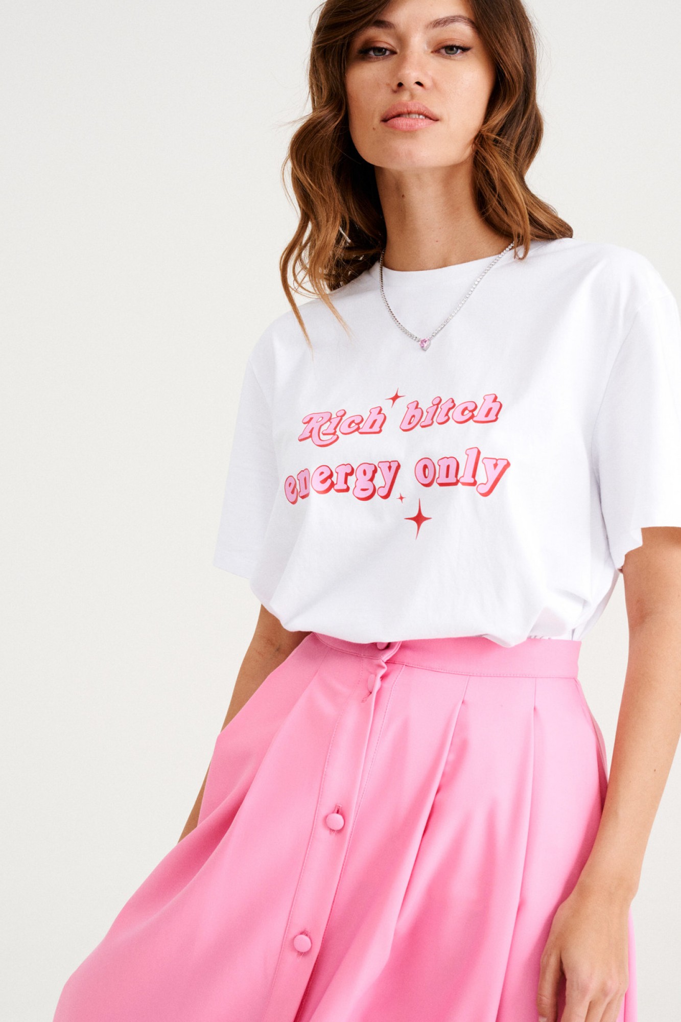 Футболка из плотного 100% хлопка станет отличной базой как для повседневный образах, так и луков для вечеринок.