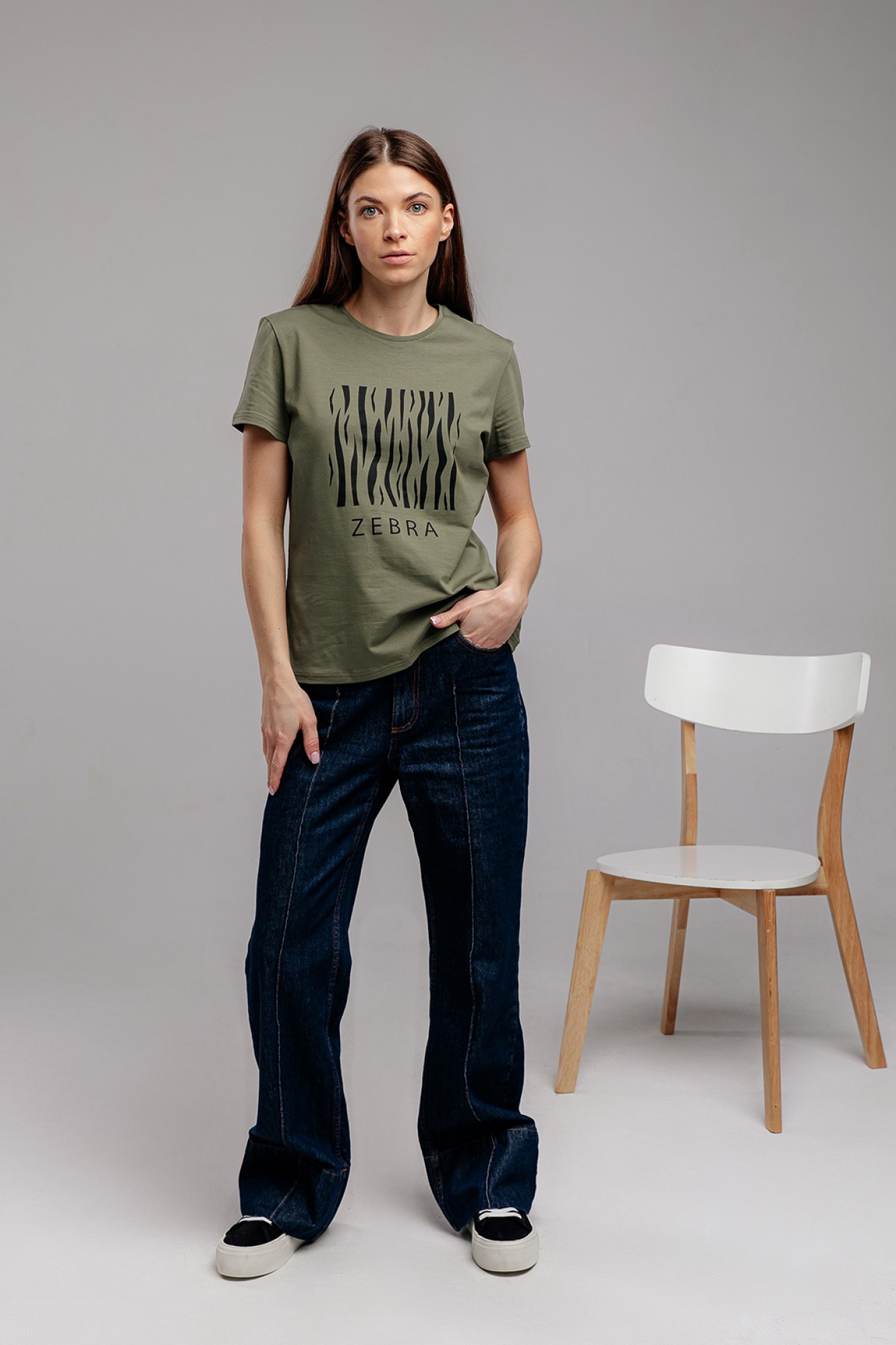Базовая женская футболка с коротким рукавом, силуэта "оверсайз", с круглым вырезом и принтом - трендовая модель.