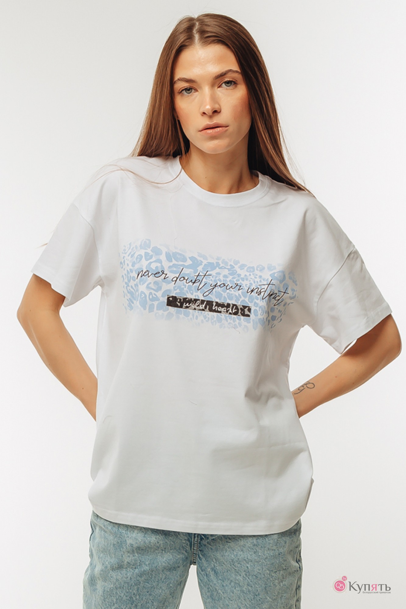Базовая женская футболка прямого кроя с круглым вырезом, коротким рукавом с печатью - трендовая модель. Мягкий дышащий материал, удобное лекало, эргономичный крой. Выполнена из плотного, мягкого, приятного к телу хлопка. Не просвечивает и сохраняет форму. Печать на футболке с нейтральным смыслом "Поразительно искать меньше". Даже после множества стирок цвет изделия сохраняется. Рекомендации по уходу: Стирать с вещами похожего цвета и вынимать сразу после стирки. Гладить с изнаночной стороны. Обязательно ознакомьтесь с инструкцией на вшивной ленте. Важная информация! Фото товара сделано при искусственном освещении студии. При естественном освещении цвета могут иметь другие оттенки.