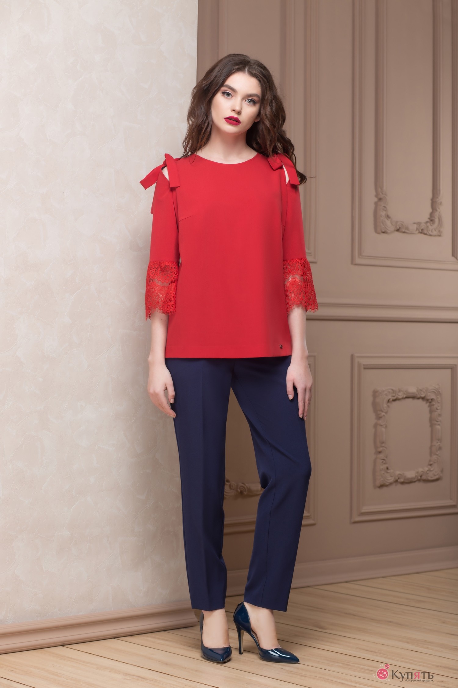 блузка: ПЭ - 75%, вискоза - 22%, спандекс - 3%, французское кружево (ПЭ - 95%, спандекс - 5%);