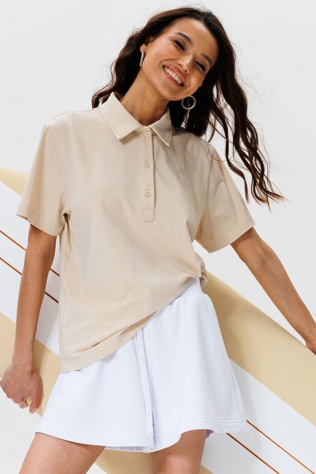 Футболка-поло: свободный крой и облегание, воротник и застежка поло с пуговицами, вышивка-логотип на левой стороне переда.