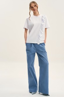 В этой футболке с воланом от GOwear вы не останетесь незамеченной! Вы легко сможете собрать много стильных образов с вашими юбками, шортами, жакетами и брюками!