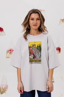 Футболка прямого кроя. По переду расположен декор в виде принта карты таро "императрица".