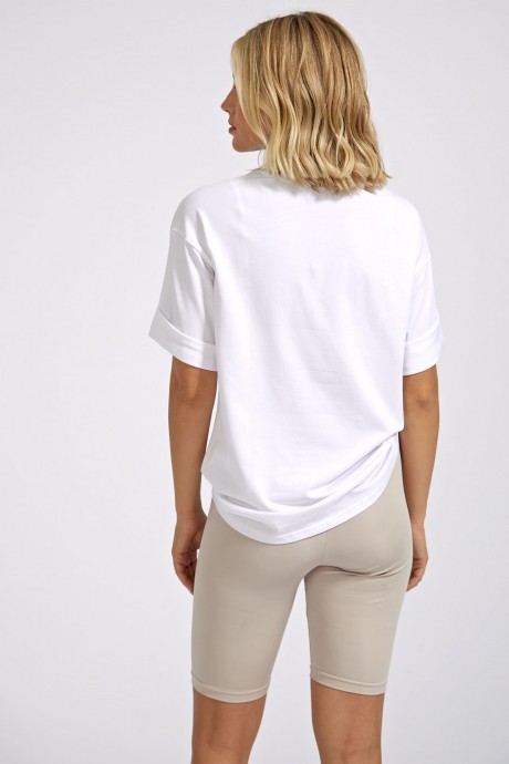 Классическая футболка из нежного хлопка качества пенье, прямого силуэта. Свободный крой oversize. Рукав чуть ниже локтя. Рекомендуется носить, подвернув один или два раза. Футболка декорированная дизайнерской печатью. Горловина обработана кашкорсе.
