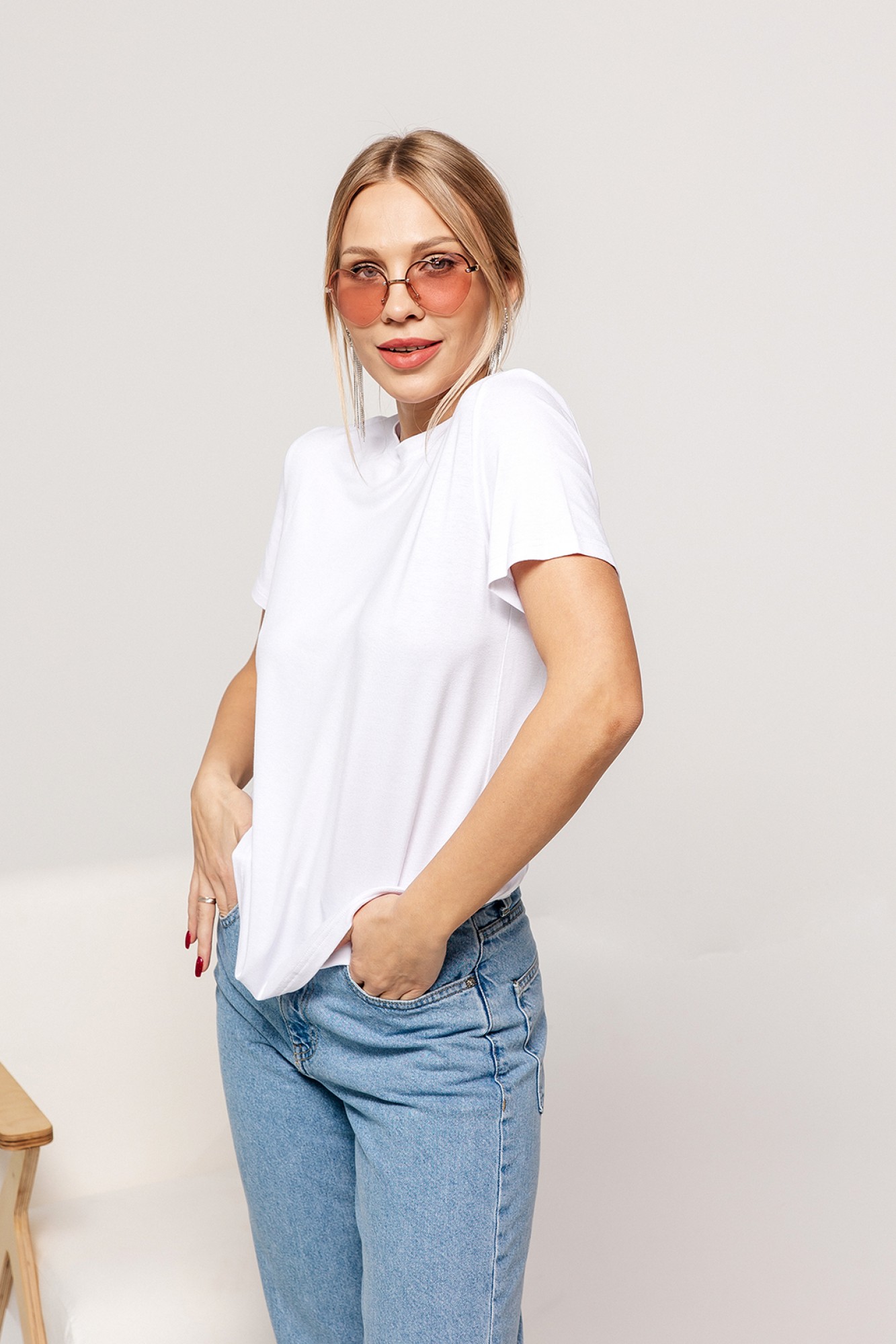 Базовая женская футболка прямого кроя подходит всем типам фигур. Свободная посадка, удобно носить навыпуск или заправлять. Выполнена из плотного и мягкого вискозного полотна приятного к телу. Не скатывается, не просвечивает и сохраняет форму и цвет даже после множества стирок. Рекомендации по уходу: Для придания первоначальной структуры и формы изделию после покупки - постирать и погладить. Стирать с вещами похожего цвета и вынимать сразу после стирки. Гладить с изнаночной стороны. Обязательно ознакомьтесь с инструкцией на вшивной ленте.