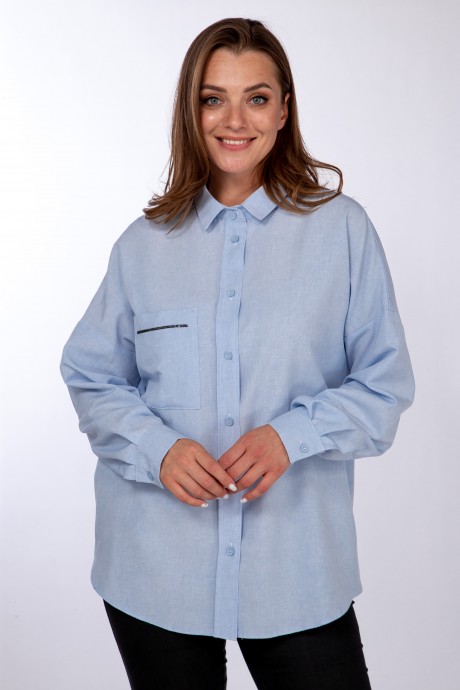 Нежная блуза - рубашка, оверсайз, прекрасно вольется в повседневную жизнь и станет одной из любимых базовых вещей в Вашем гардеробе. Свободный крой, спущенный длинный рукав, присобранный на манжету с пуговицами. По переду блузка застегивается на пуговицы, в качестве декора — накладной карман, который украшен ненавящевыми стразами. Спинка прямая, воротник классический. Изделие хорошо сочетается как с брюками, так и с юбками. Длина изделия по спинке 77 (+/- 1 см). Длина рукава от горловины 77 (+/- 1 см). Изделие подойдет на рост 170 см.