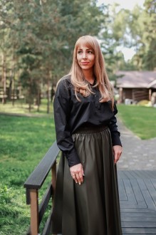 рубашка свободного силуэта, прямого кроя. Воротник рубашечный классический. Центральная планка, петли-пуговицы. Спущенная линия плеча, низ рукава заканчивается притачной манжетой, застегивается на 3 петли и пуговицы. Длина плеча-25,5см, длина рукава+манжет-50см, длина по спинке-74см.