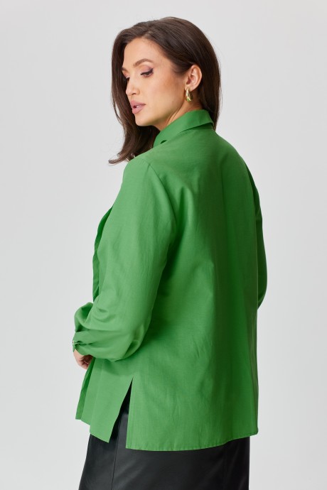 Блузка женская классическая прямого силуэта. Перед с вертикальными декоративными бейками, с застёжкой на петли и пуговицы. Рукав втачной одношовный со сборкой по низу, на притачном манжете. Воротник рубашечный на стойке.