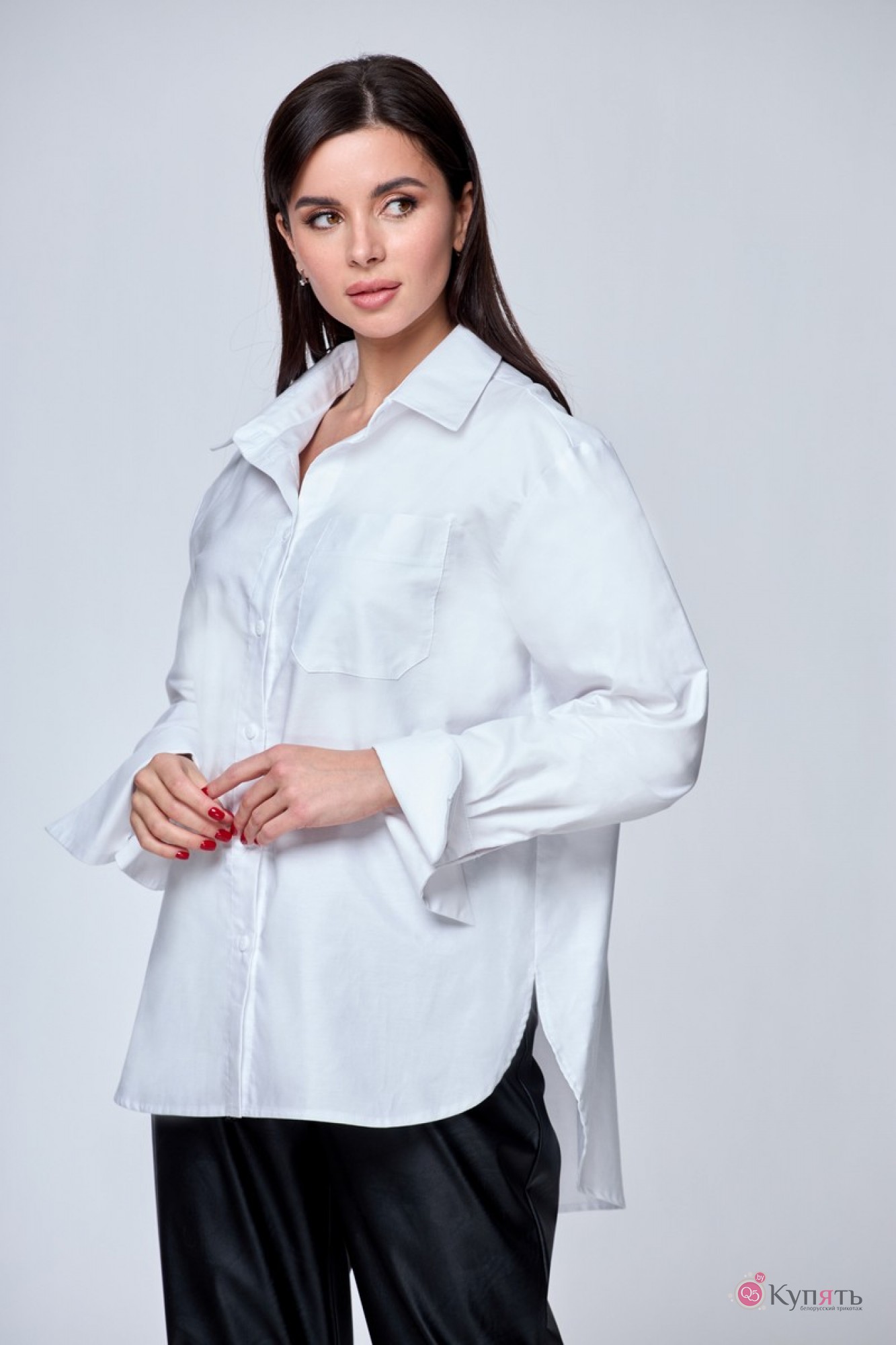 Рубашка прямого силуэта, по спинке удлинённая, с нагрудным карманом. Длинный рукав с фигурным манжетам. Классический рубашечный воротник. Застежка на петли пуговицы спереди. Рубашка будет вам удачной базой, как для офиса, так и для прогулок. Свободный крой придаст вам лёгкости, скроет недостатки фигуры. А если вы любите оверсайз, можно смело брать на несколько размеров больше и чувствовать себя максимально уверенно.