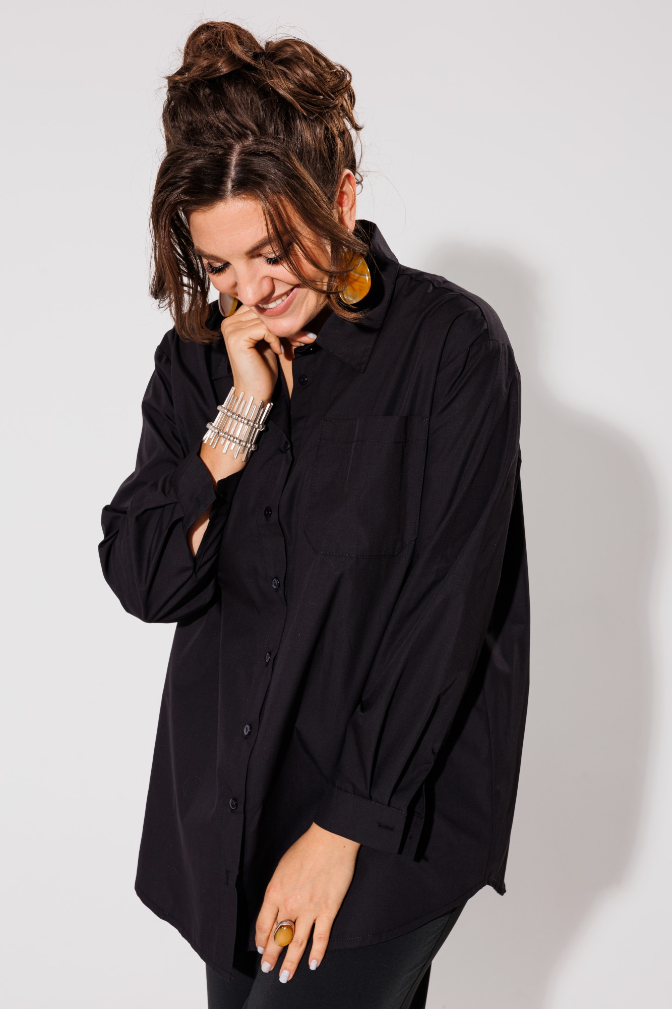 С этой рубашкой у тебя будет миллион вариантов, как её стилизовать: добавь аксессуары, чтобы придать ей индивидуальность, или носи её под топ и расстегнутой в теплую погоду.