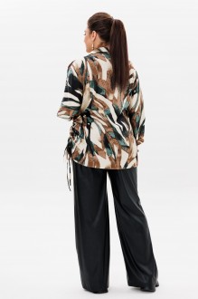 Мягкий, приятный к телу материал с красивым принтом словно ласкает кожу, создавая ощущения лёгкости и утонченности. Боковая кулиска позволяет аккуратно присборить рубашку и добавить силуэту женственности и индивидуальности. Скрытая супатная застежка добавляет модели изысканности, а рукава на резинке подчеркивают современный стиль и удобство.