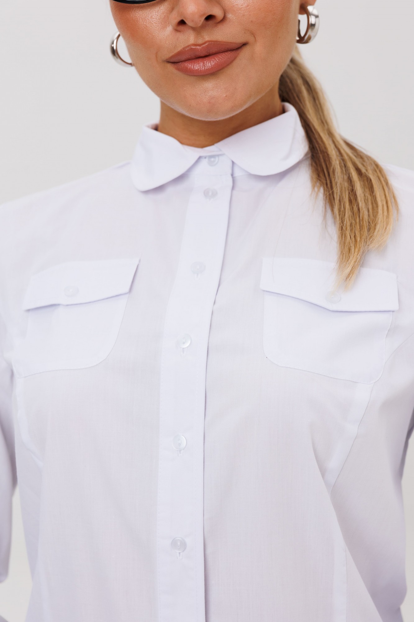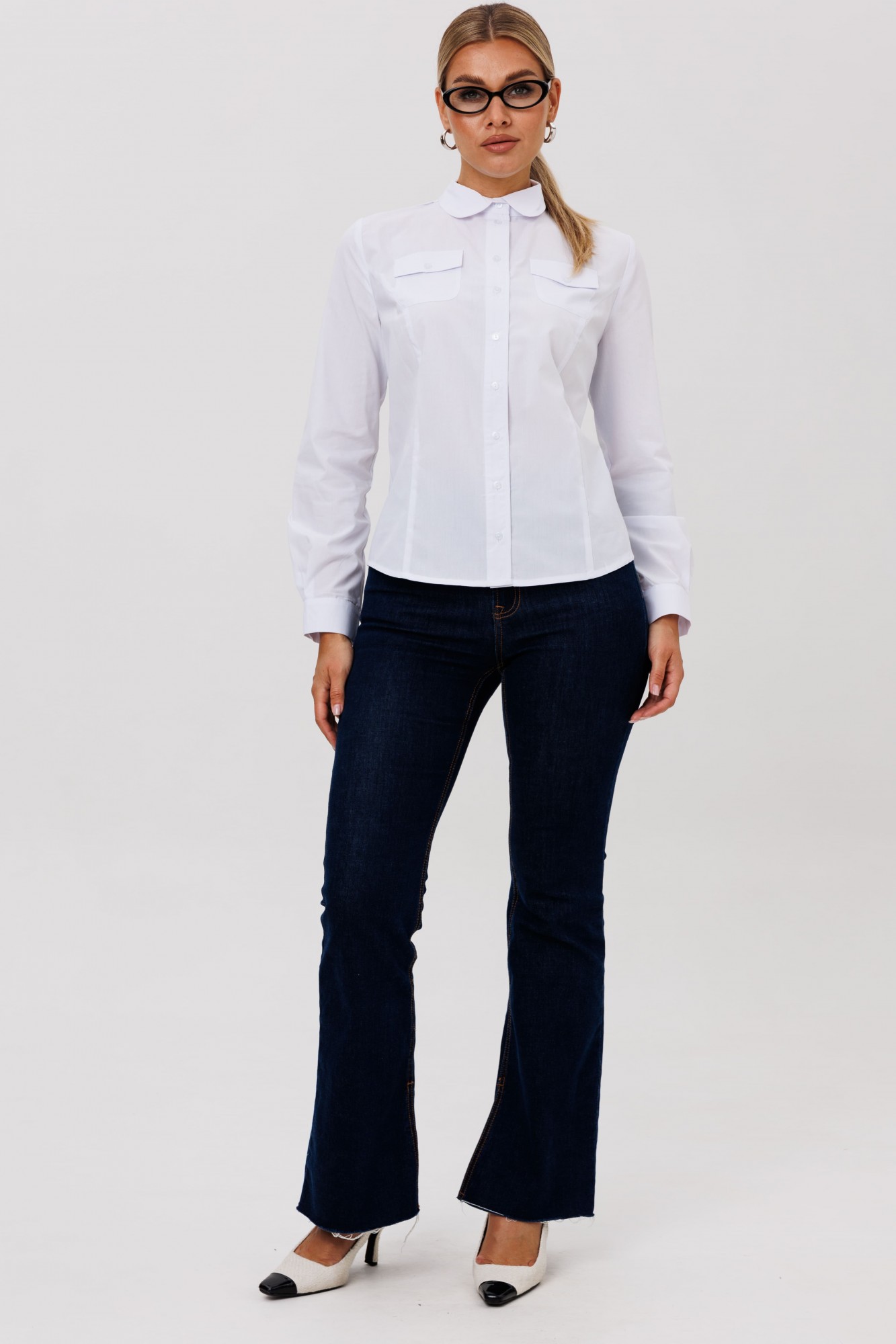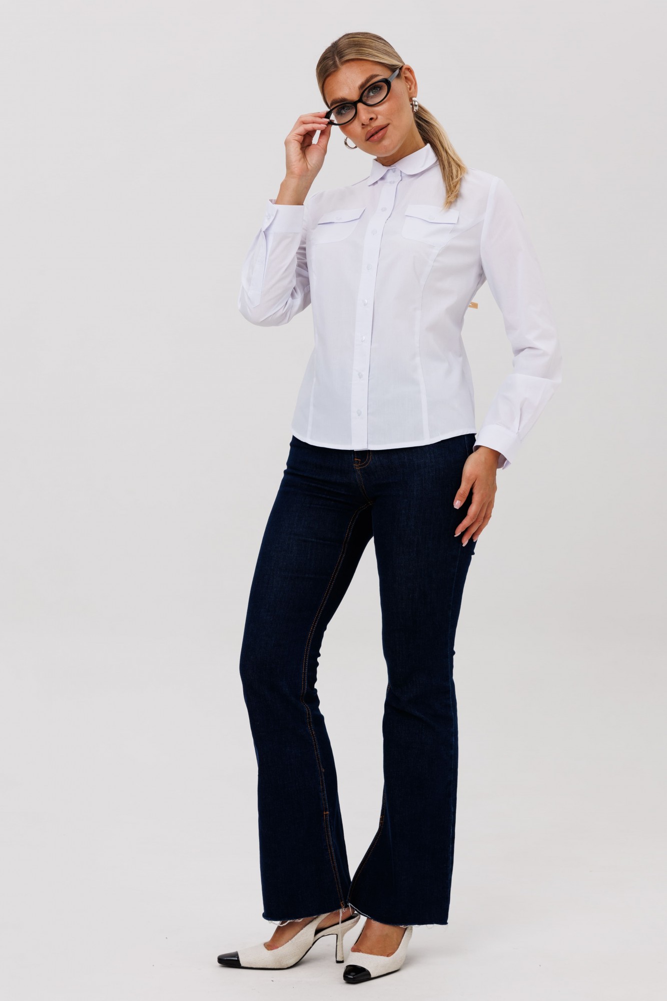 Классическая блуза полуприлегающего силуэта, создающая элегантный и утонченный силуэт. Модель сконструирована с талевыми вытачками по переду и спинке, что обеспечивает идеальную посадку по фигуре. Дополняют образ накладные карманы с аккуратными клапанами.