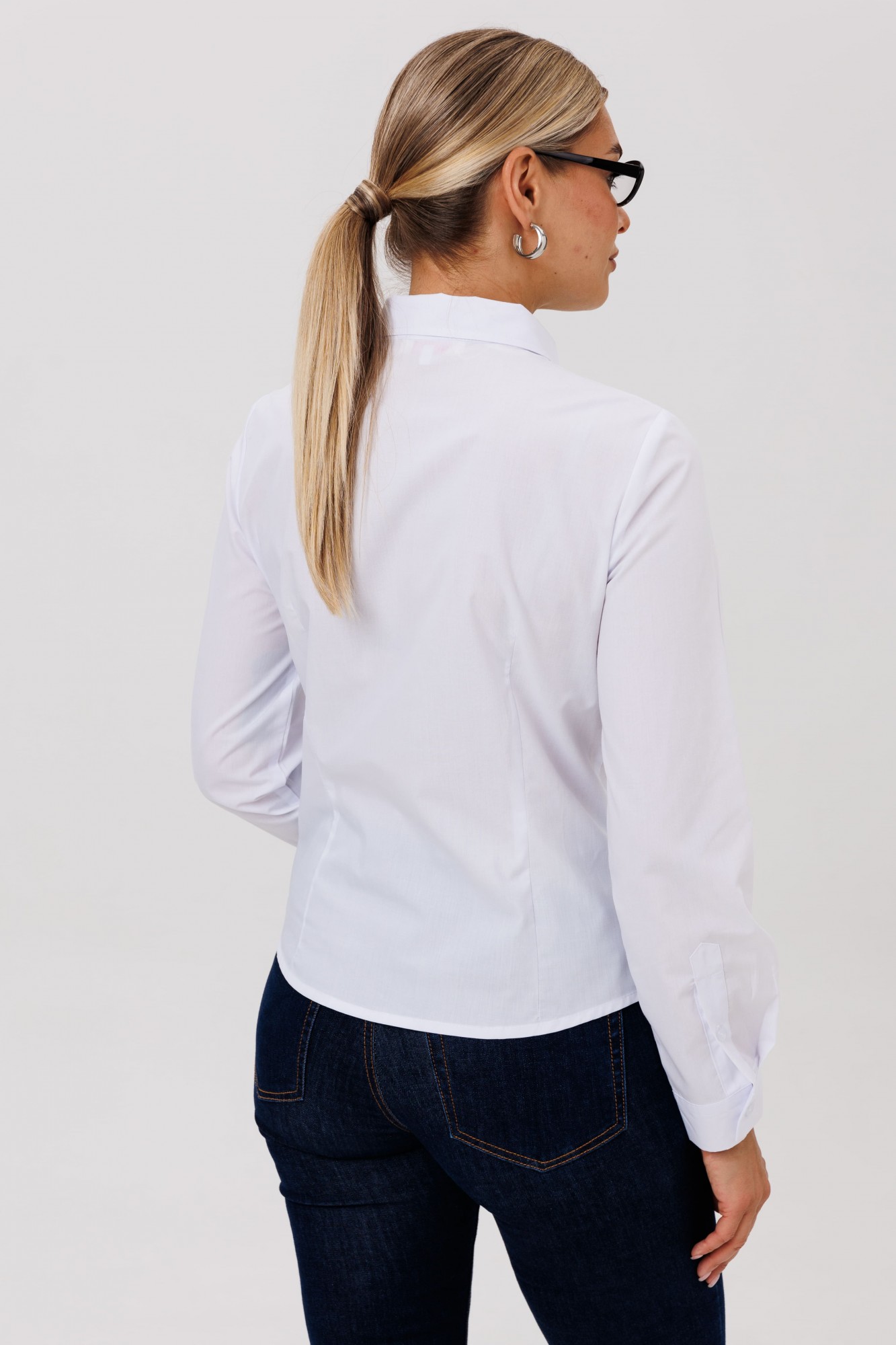 Эта блуза — универсальный базовый предмет гардероба, который легко комбинируется с деловой и повседневной одеждой. Она составляет гармоничный ансамбль с юбкой, брюками или костюмом, делая образ завершенным и стильным.