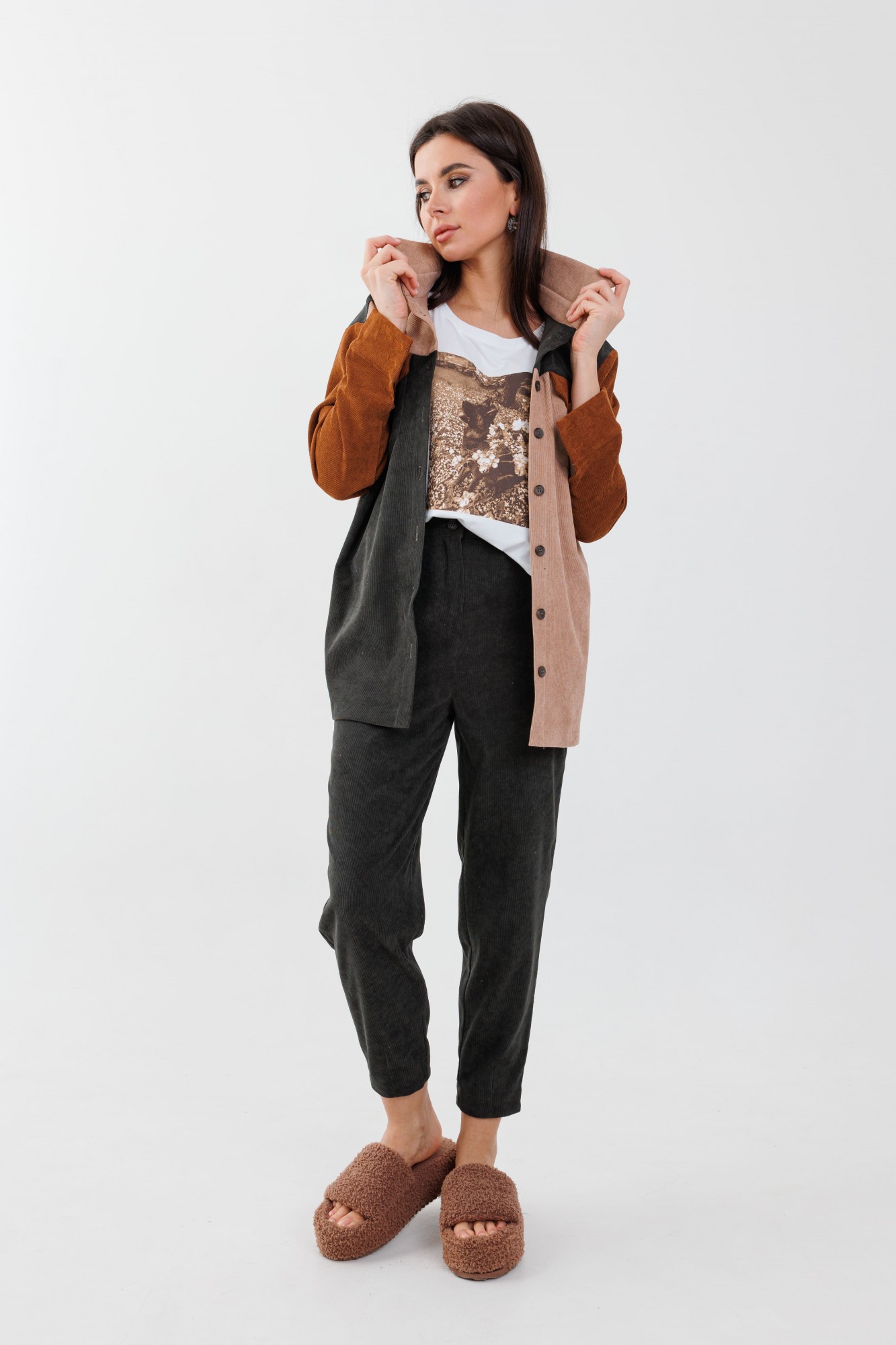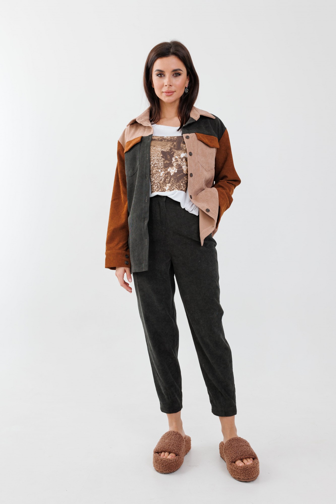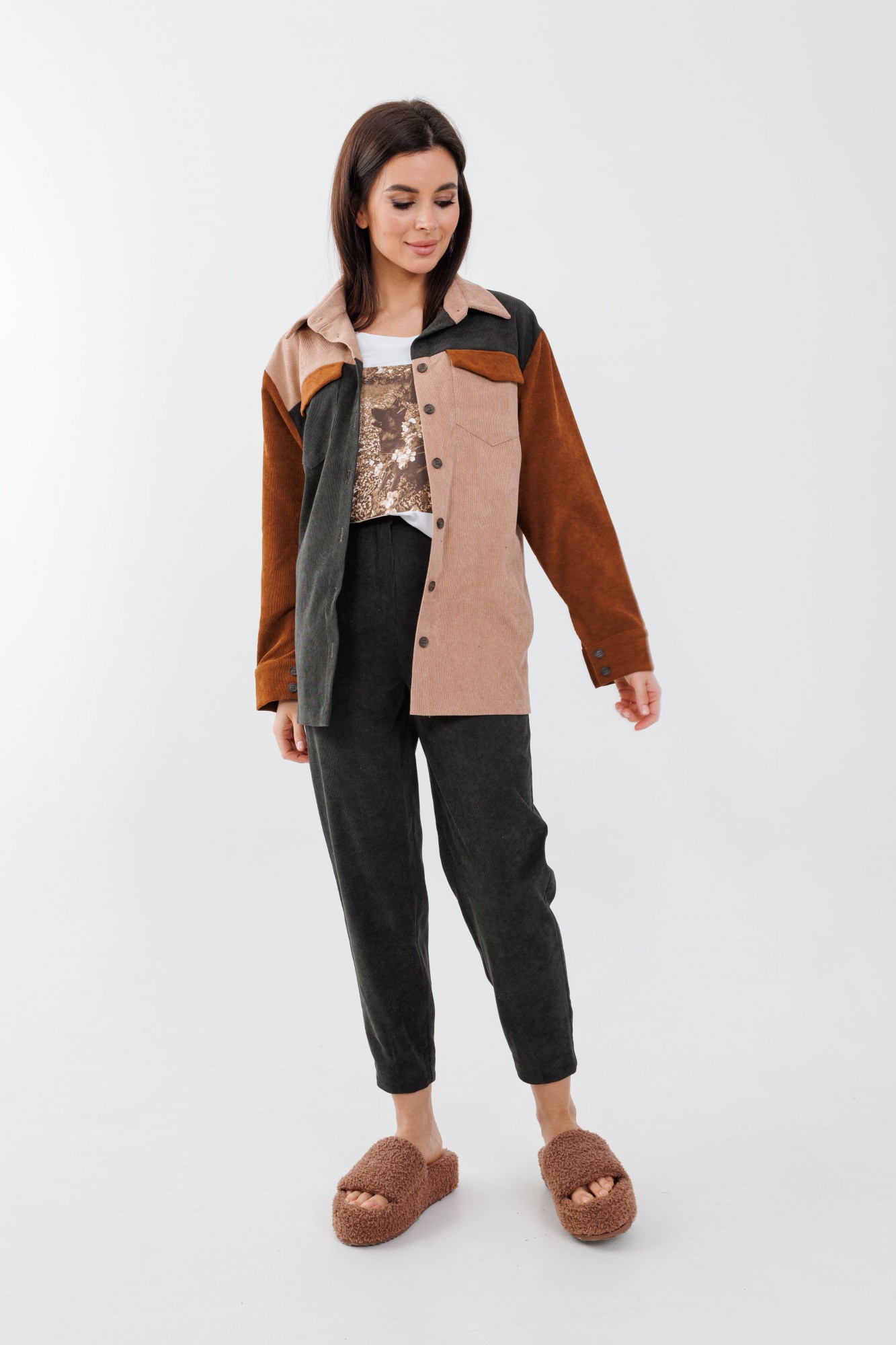 Вельветовая рубашка прямого силуэта от Анелли, сочетающая в себе оттенки природной красоты леса, – идеальное решение для тех, кто ценит стиль и уют. Отложной воротник на стойке и застёжка на пуговицы добавляют нотки строгости, а спущенное плечо с длинным втачным рукавом на манжете – удобство и практичность. Край кокетки на спинке обработан бахромой, что не может не привлекать внимания. Элементы рубашки сочетаются тремя цветами – это смелое решение, которое даёт возможность собирать образы с любыми вашими вещами!