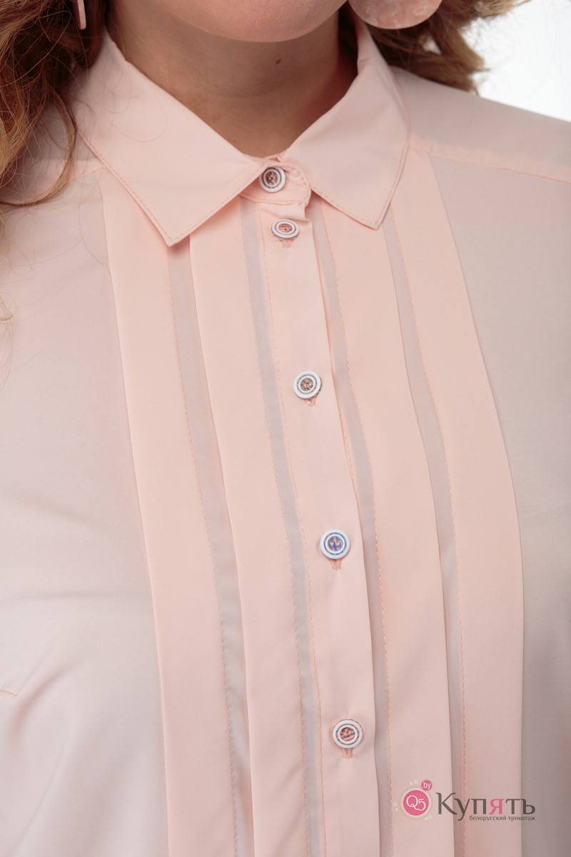 Прямой силуэт, отложной воротник на стойке. Перед с застроченными односторонними складками и кокетками, переходящие в кокетку по спинке. Застежка по всей длине на пуговицы. По середине спинки застроченная односторонняя складка.