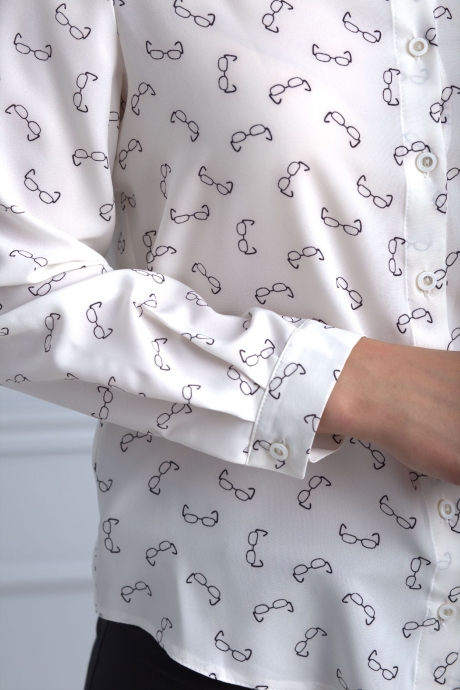 Прямой силуэт, втачной рукав на манжете. Рубашечный воротник на притачной стойке, центральная застёжка по всей длине на пуговицы. По переду от линии кокетки небольшая сборка, по спинке встречная складка.