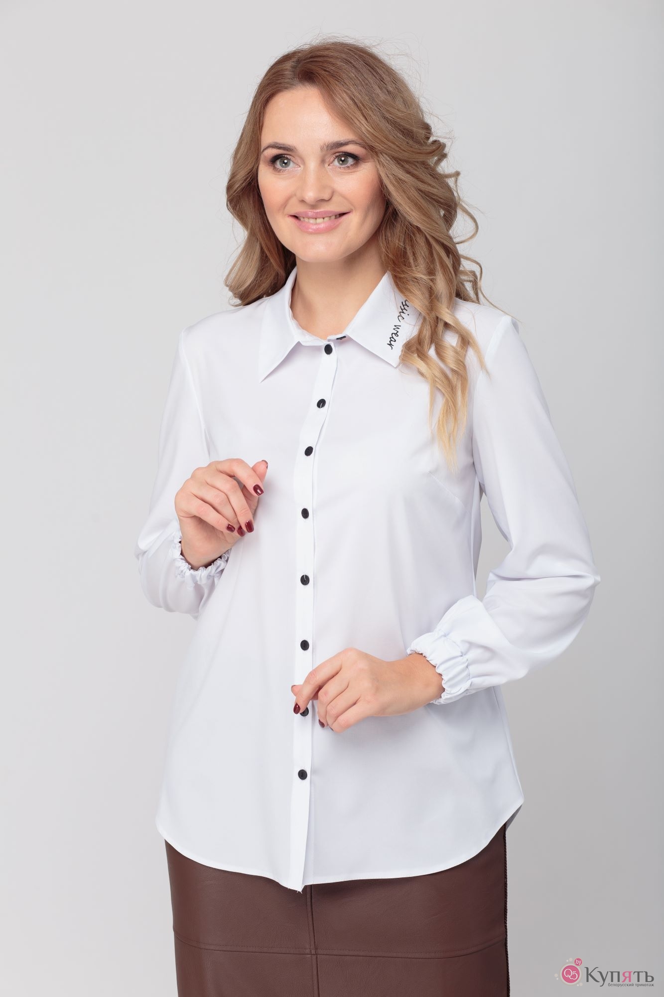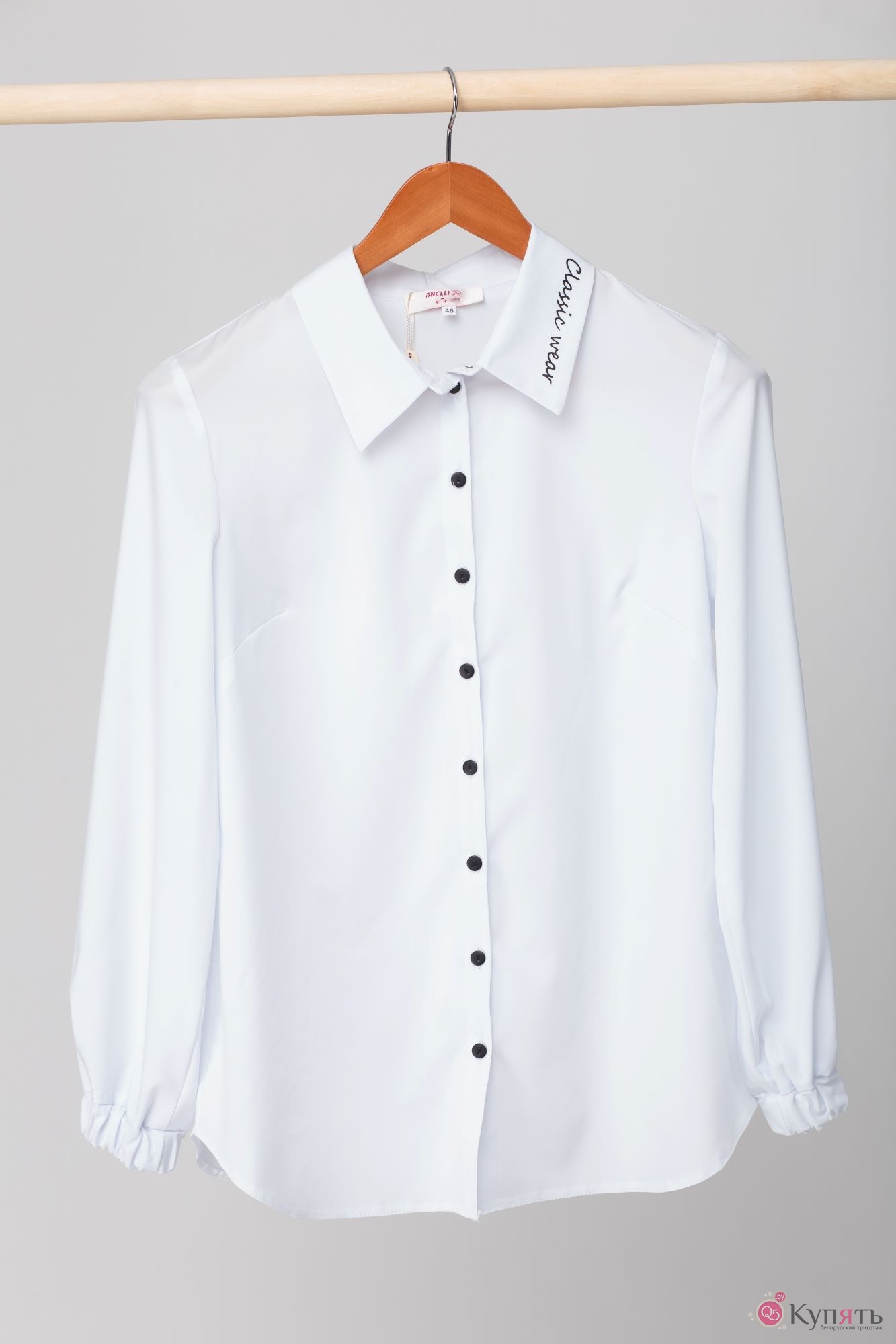 Блузка классического покроя, с отложным воротником на стойке и застежкой на пуговицы по всей длине, втачной рукав с манжетами сосборенными эластичной лентой.