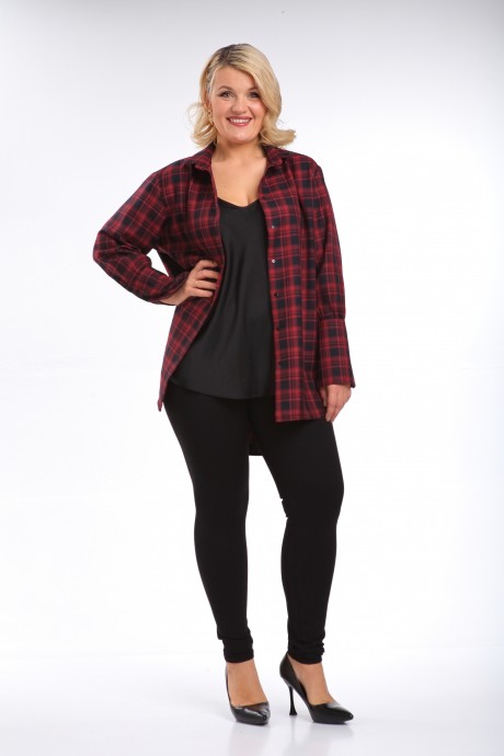 Примечание: параметры модели обхват груди 104см, обхват бедер 118см, размер рубашки на модели 52.