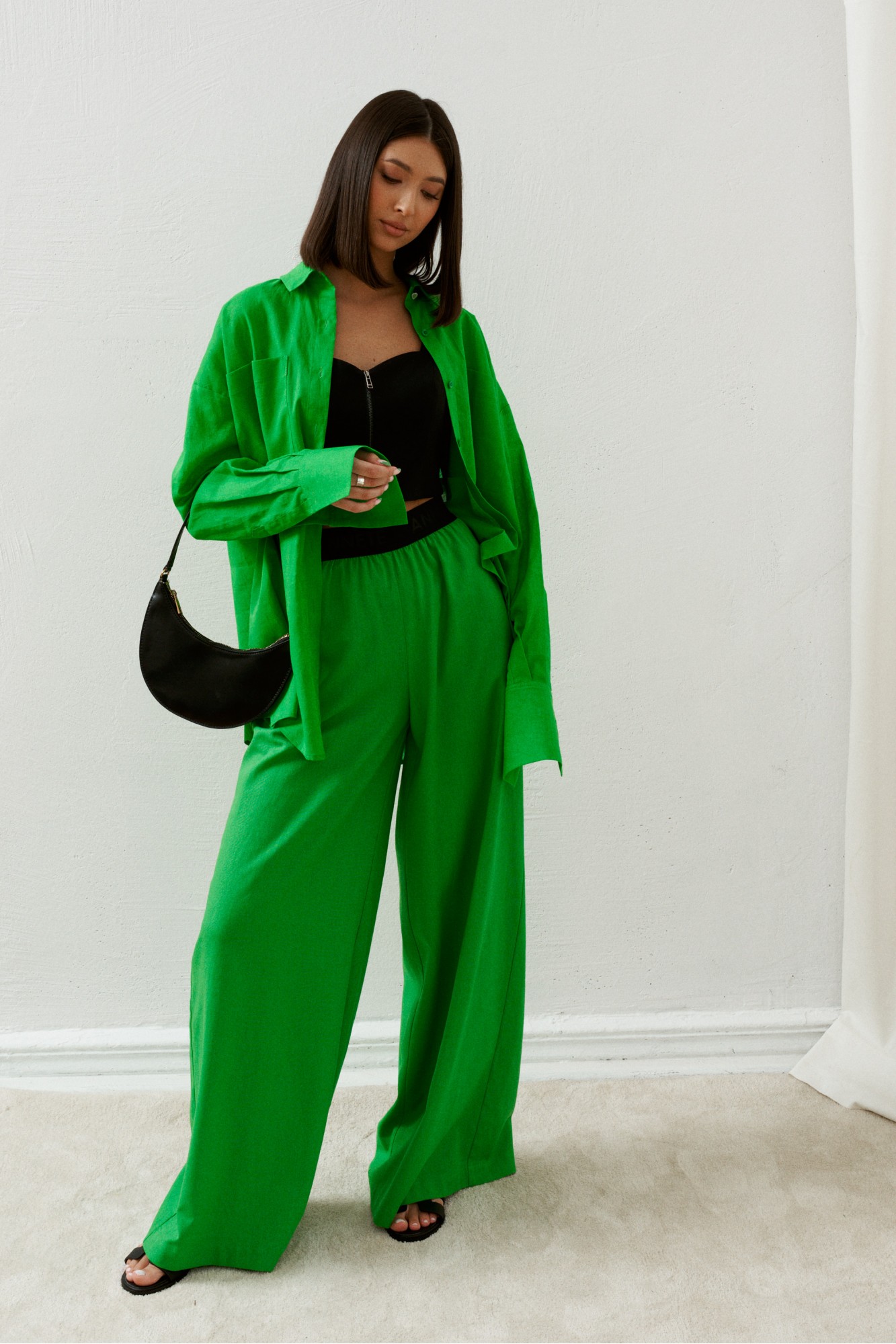 Рубашка выполнена из льняной ткани, прямого свободного кроя. Прямой свободный крой позволит чувствовать максимально комфортно, насыщенный цвет придаст яркость образу.