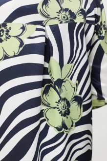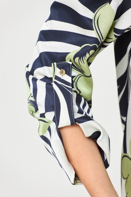 Рубашка свободного силуэта, удлиненная с центральной застежкой по пуговицы, воротник рубашечный с отрезной стойкой, нижняя часть спинки по центру со складкой. Рукава втачные двухшовные с манжетом по низу. Манжет застегивается на петли пуговицы.