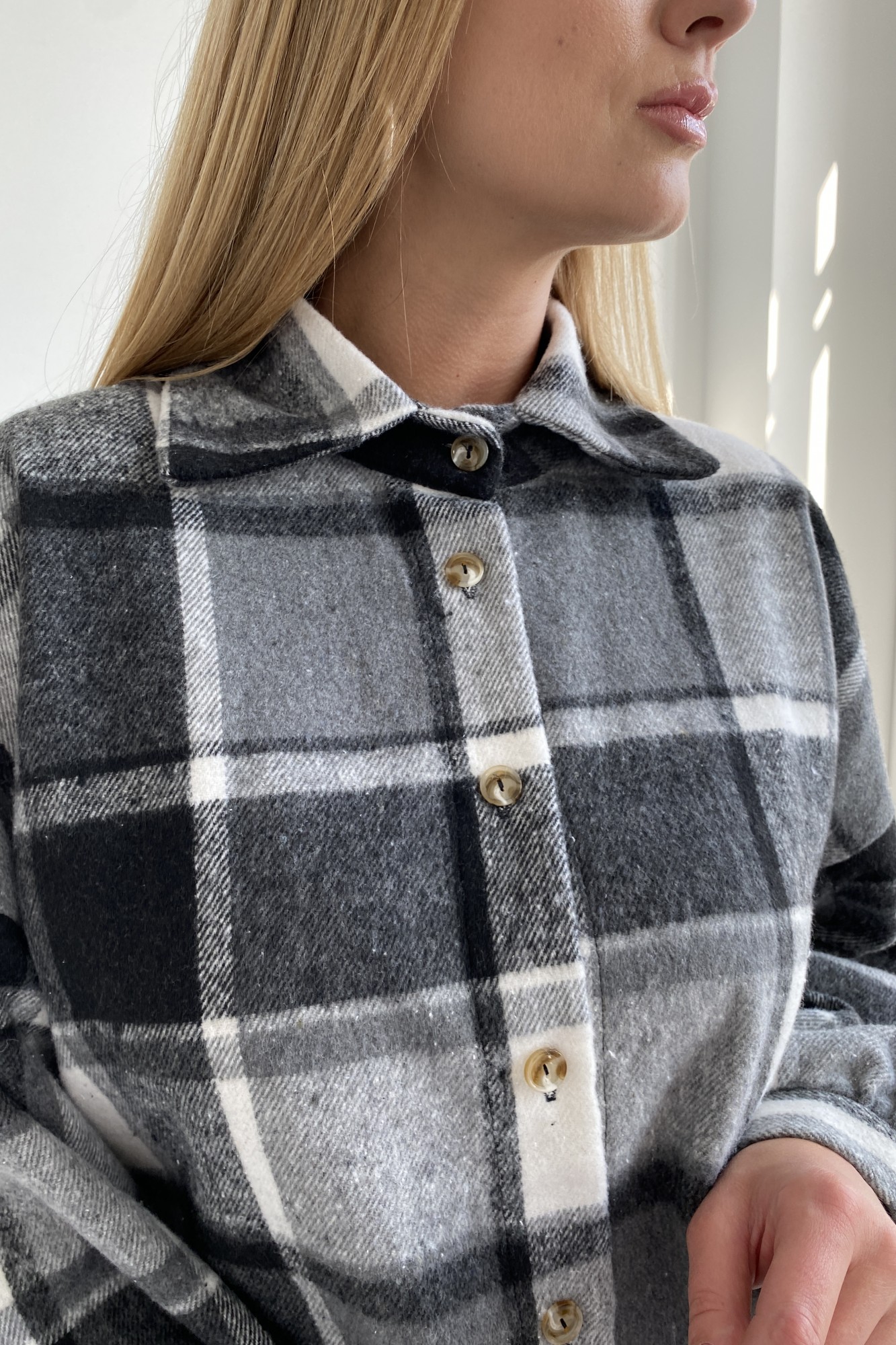 Клетчатая рубашка с начесом. Стильная теплая вещь для холодного сезона. По переду расположена застежка на пуговицы. Рукав с манжетой на сборке.