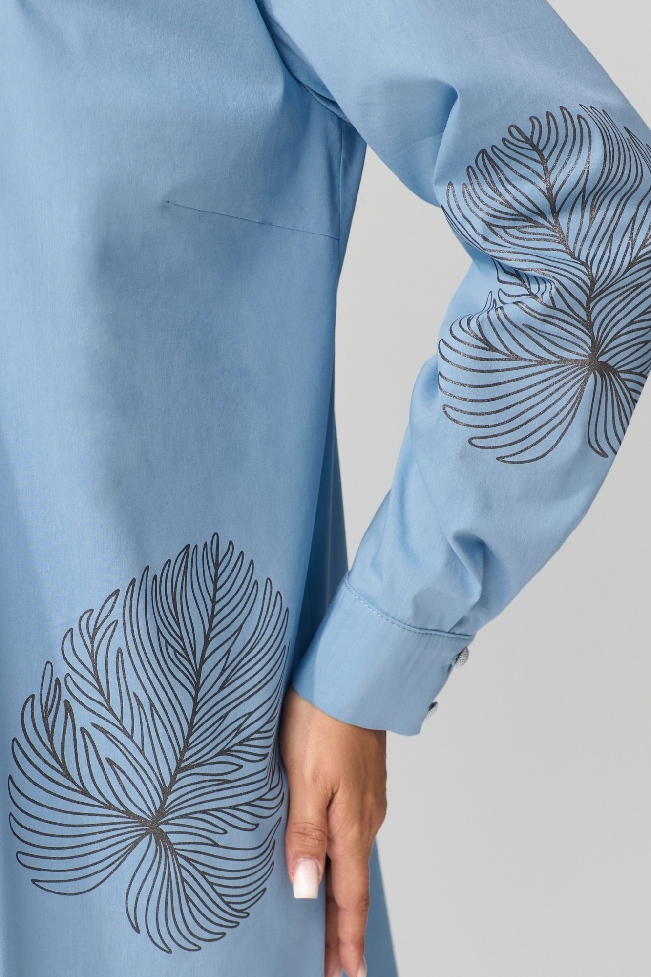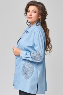 Блуза "Радаси" из хлопокой ткани, прямого силуэта. Рукав втачной, длина рукава не регулируется, манжет на застежку, на петли пуговицы. Воротник рубашечного типа со стойкой, край борта обработан отрезной планкой. Блузу украшает декоративная печать. Внимание! Украшение в комплект не входит.
