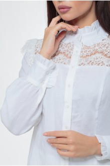 Белая блузка с кружевными кокетками выполнена из льна и хлопка.