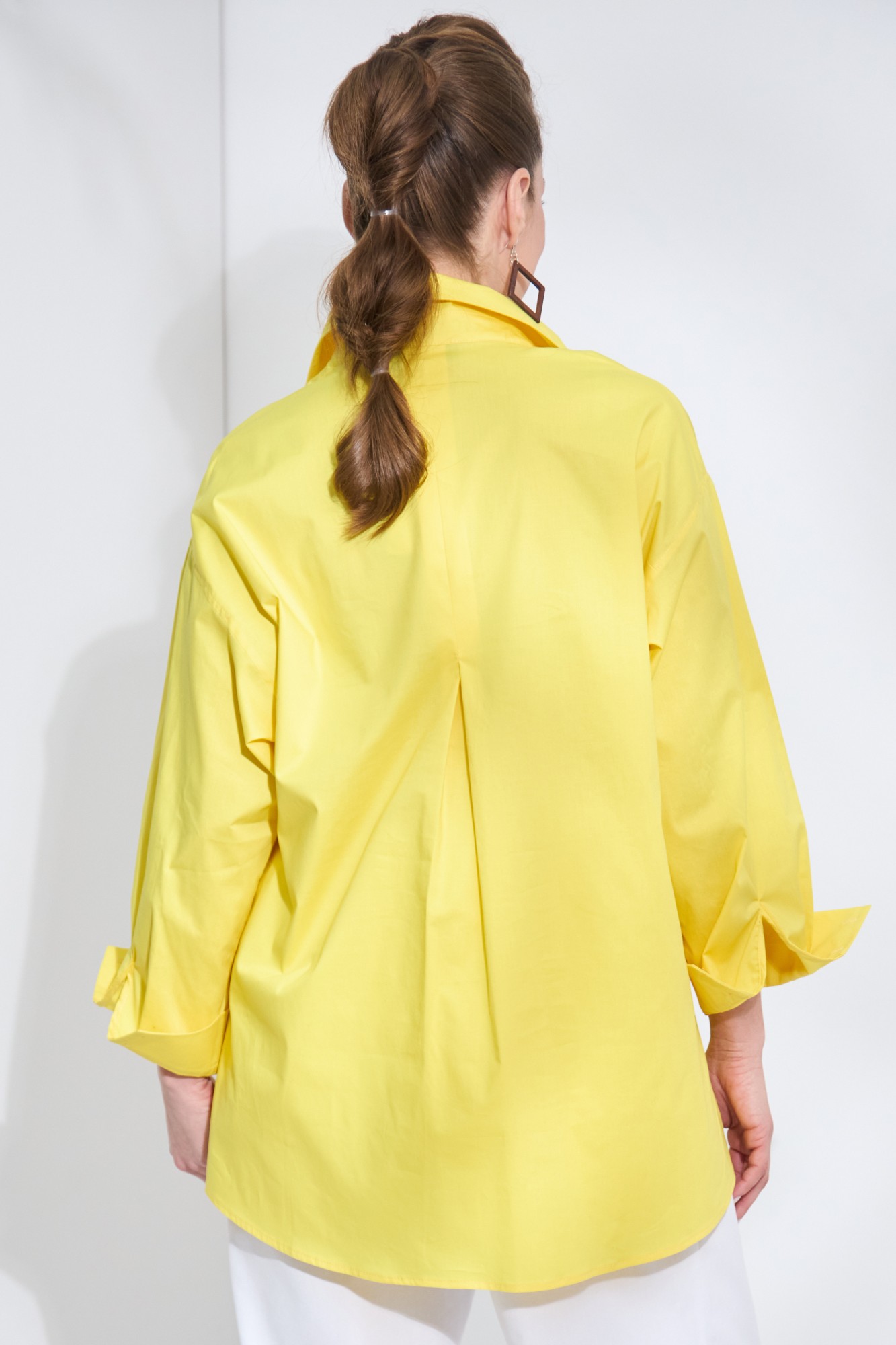 Женская рубашка на каждый день! Рубашка-оверсайз – настоящий «маст-хэв», который сделает образ стильным в любом размере. Именно в таком контексте мы предлагаем, казалось бы простую рубашку - оверсайз. Есть массу вариантов сделать ее модной, а образ аховым. Можно вместо бабочки использовать длинные бусы или бусы-галстук. Смелее экспериментируйте с вариантами и Вы будете неотразимы и неповторимы! Рукав с углубленной проймой и со спущенным окатом. По спинке встречная складка.