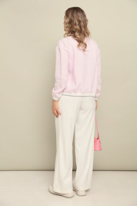 Рубашка-бомбер из лёгкой льняной ткани с застёжкой на петли-пуговицы. Низ рубашки и манжеты выполнены из довязов.