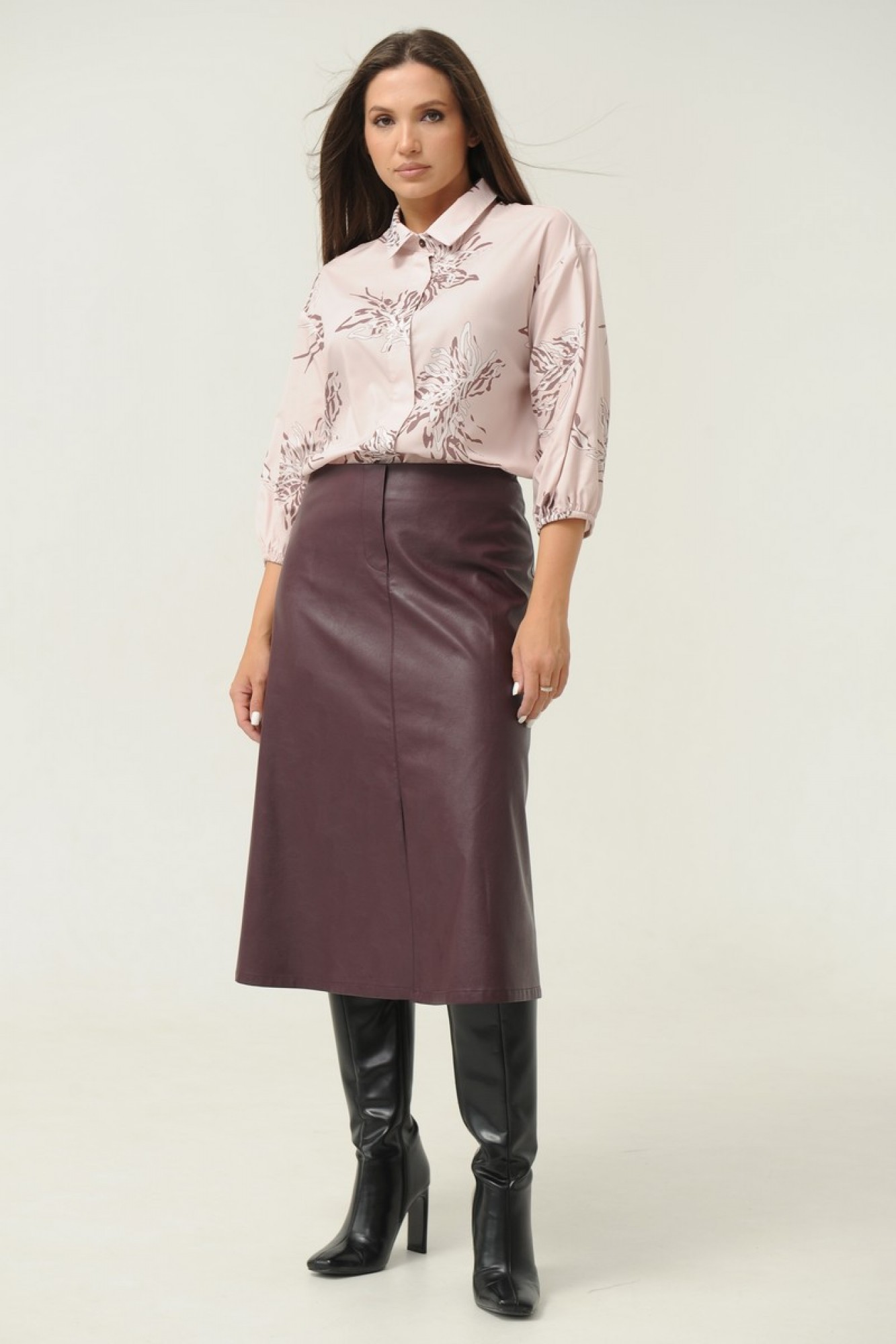 В бежевом цвете сфотографирована с нашей юбкой из экокожи 2021, в ирисовом цвете с нашими джинсовыми брюками 2017.