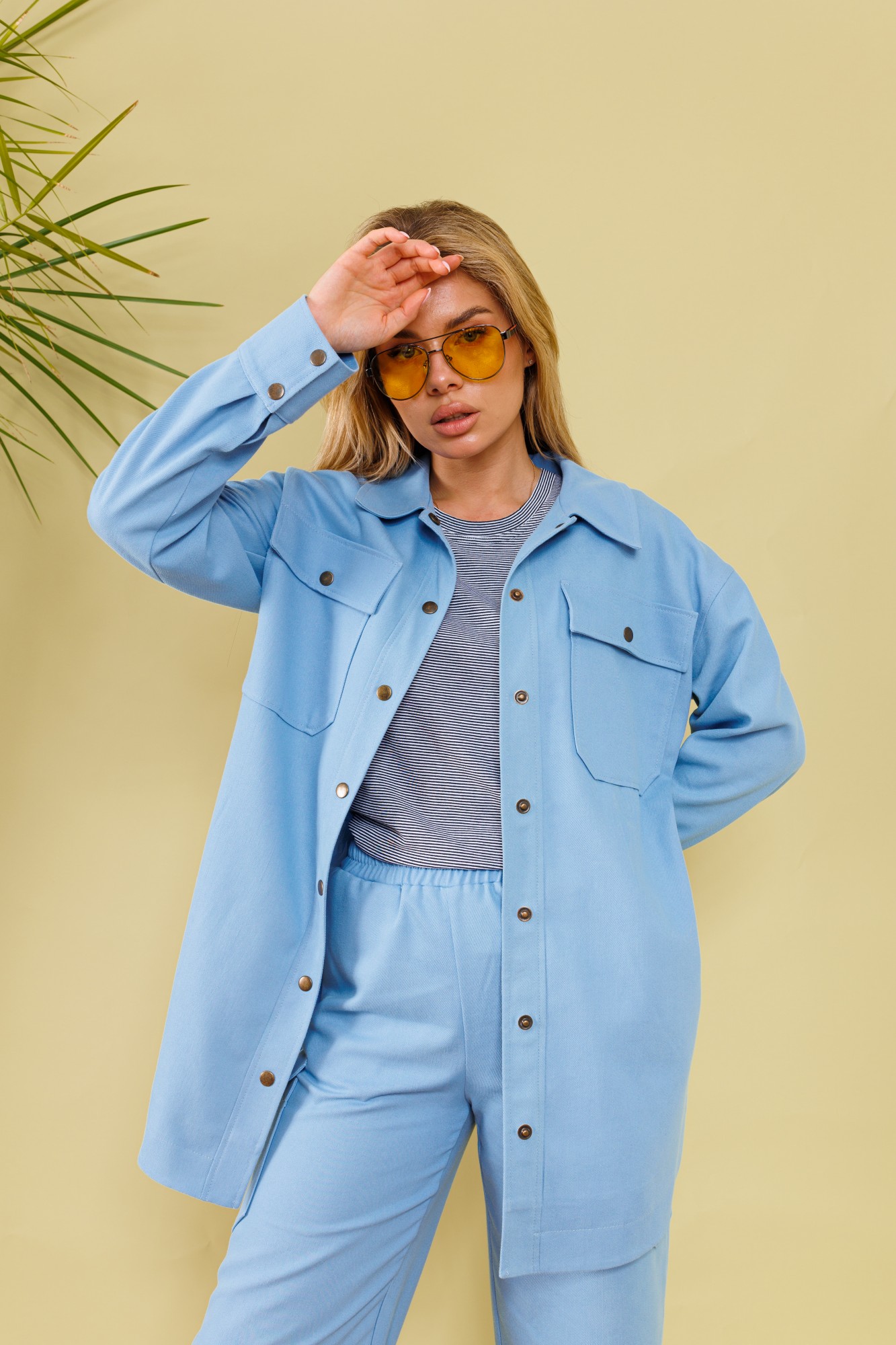 Мегакомфортная рубашка из хлопка прямого кроя со спущенной линией плеча. Горловина обработана рубашечным воротником с отрезной стойкой. Застёжка центральная на кнопки. Есть нагрудные карманы и в боковых швах. Низ рукава обработан притачной манжетой, застёгивается на кнопки. Фигурный низ. Изделие без подкладки.