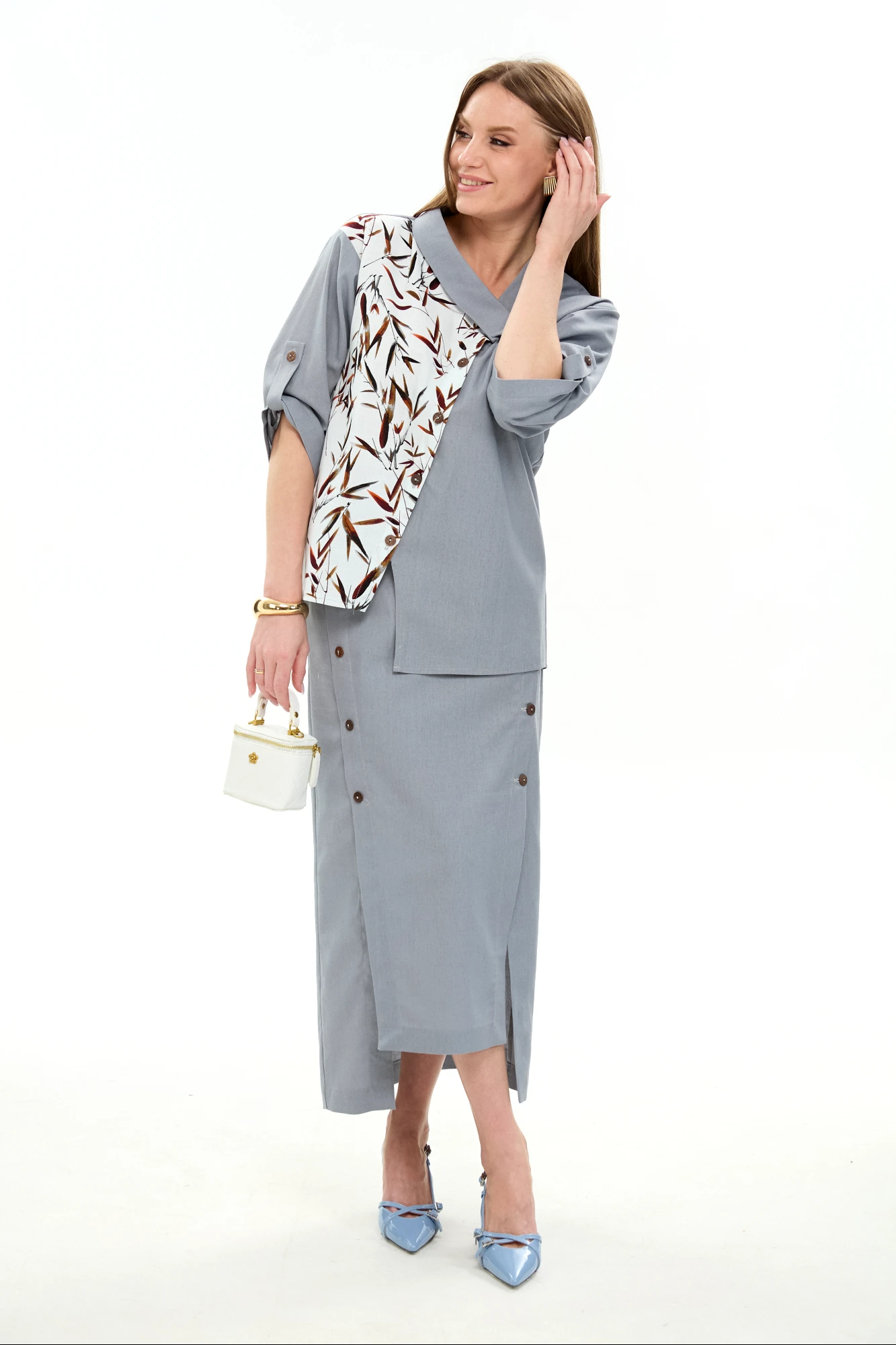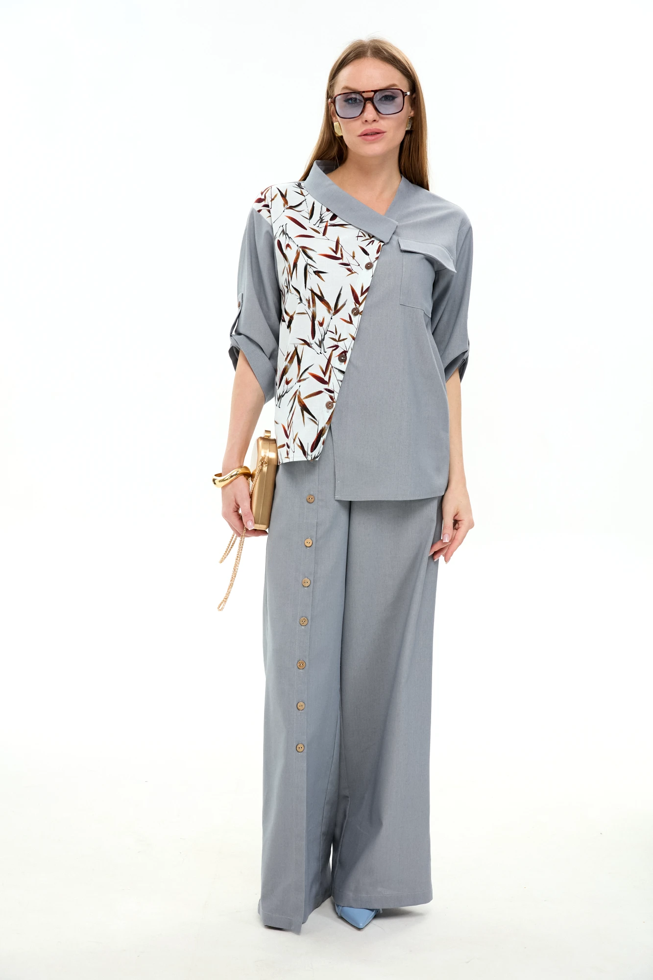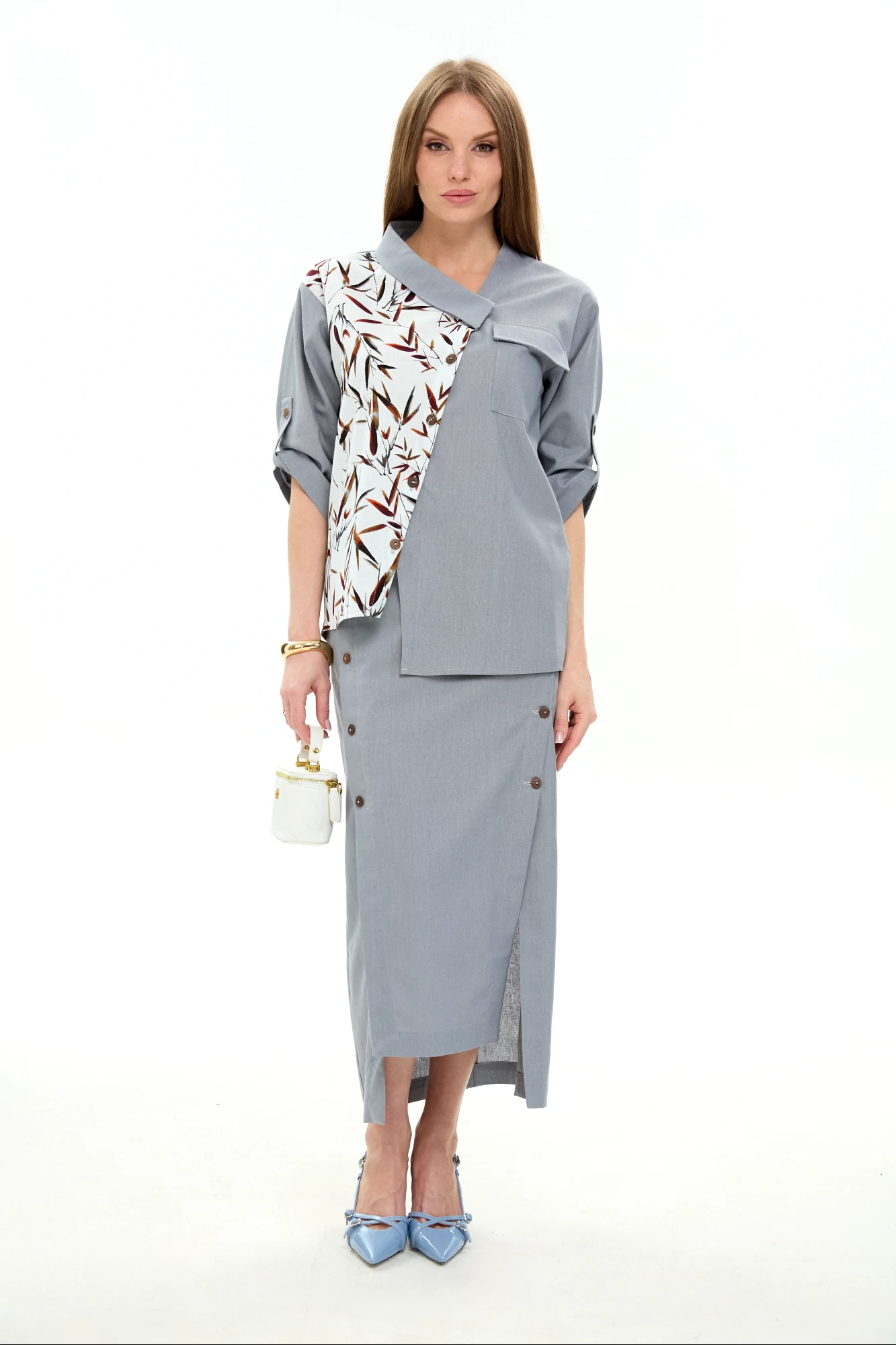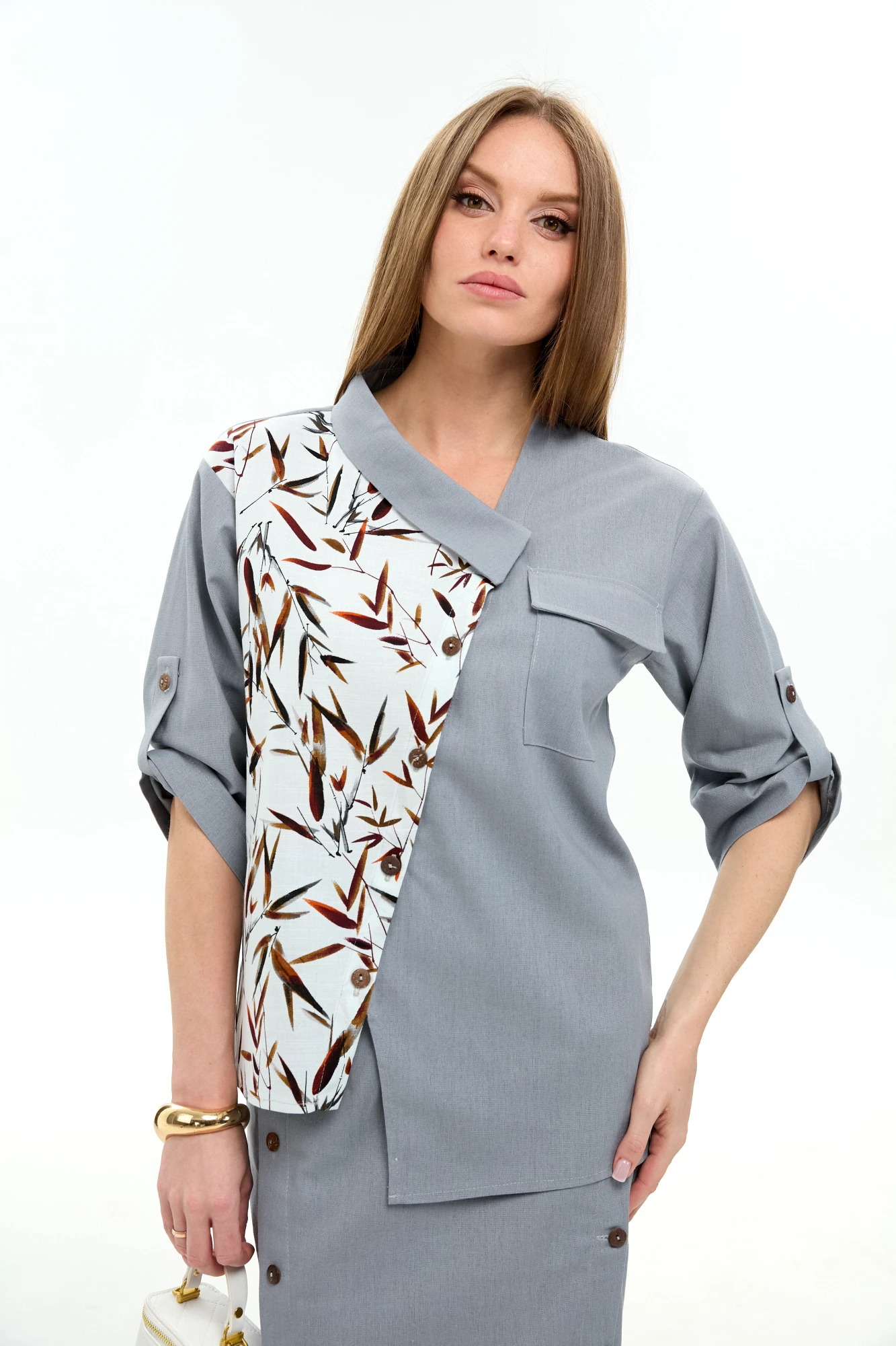 Рубашка NikVa н902 -14 серый и листья мультиколор