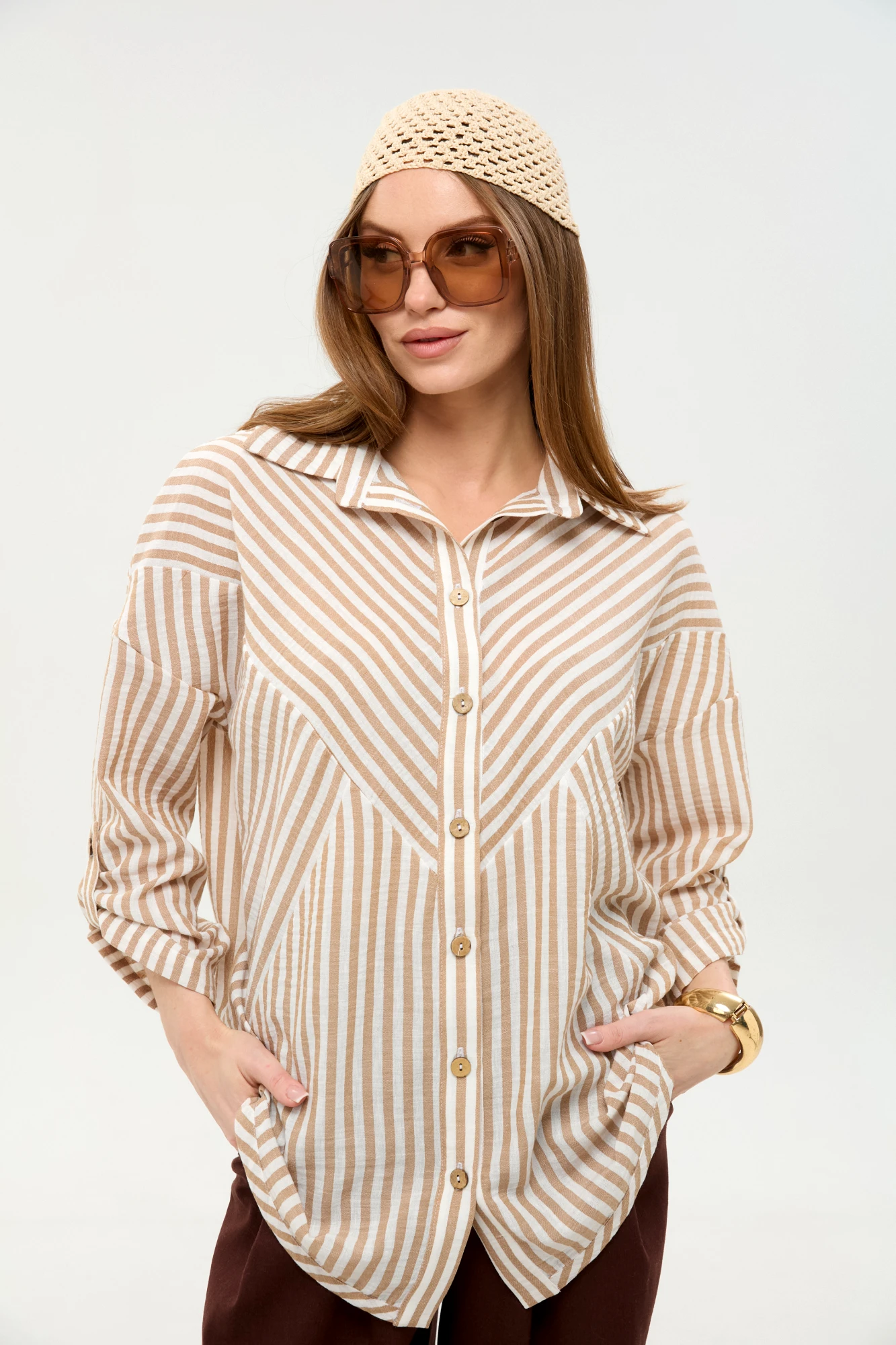 Рубашка NikVa н953 -4 песочные полосы